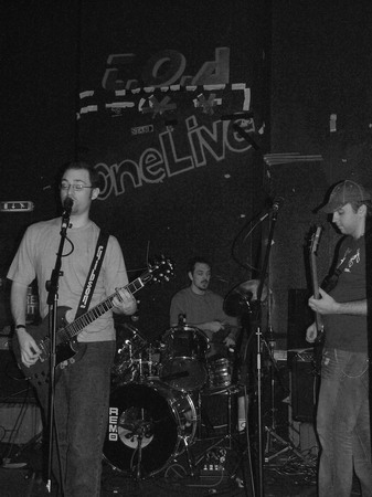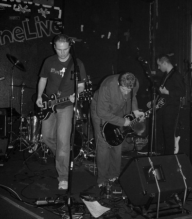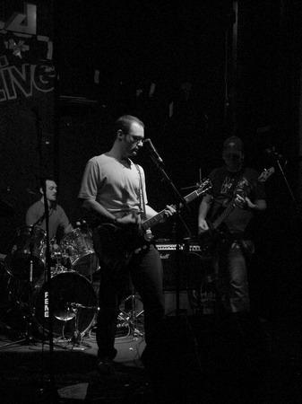 Felicity Kicks were the last on tonight, and you knew they meant business as soon as they got up there. American rock/metal influenced music, with long, busy metal riffs, and some great variations in tempo and volume. This had already turned into a slightly over serious and very grown-up performance. The drummer surrounded himself with cymbals and used them effectively. The low, loose, and simple bass made its presence felt. Unfortunately the backing vocals were lost in the volume of the guitars, but there was certainly great technique shown by all members, shame about the lack of movement though, the stage demeanour was less than captivating. The frontman had that James Hetfield vocal thing going on, which suited their music as well as it does Metallica’s, the music wasn’t as heavy as that, but half the time it didn’t need to be, especially with “Spite” a song featured on their site, which starts with a slow and almost beautiful intro, which slipped into their set really well. They showed their roots a bit by including a cover of You Shook Me All Night Long by AC/DC, not that I think that’s a bad thing one little bit.