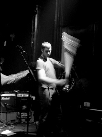 Beginning another night of live music at the Old Angel,Alcohol presented their stylings to the audience, and sadly, trying to hear past the ridiculously loud vocals was apparently going to be a bit of a challenge. The drums seemed to be quite a focal point in Alcohol’s music, they were never repetitive and switched between simple punk rock to tribal/industrial sounding with a very prominent and well used bass drum. These drums were accompanied by a heavily distorted, rumbling bass and some chord thrashing guitar during the songs, but the frontman turning his hand to some impressive rock n roll intros to most songs. The sound let Alcohol down, the vocals were too loud, and they sounded monotonous and expressionless at such a level. There was no criticising the music though, it never stayed the same, and sounded busy and undoubtedly rock and roll throughout.