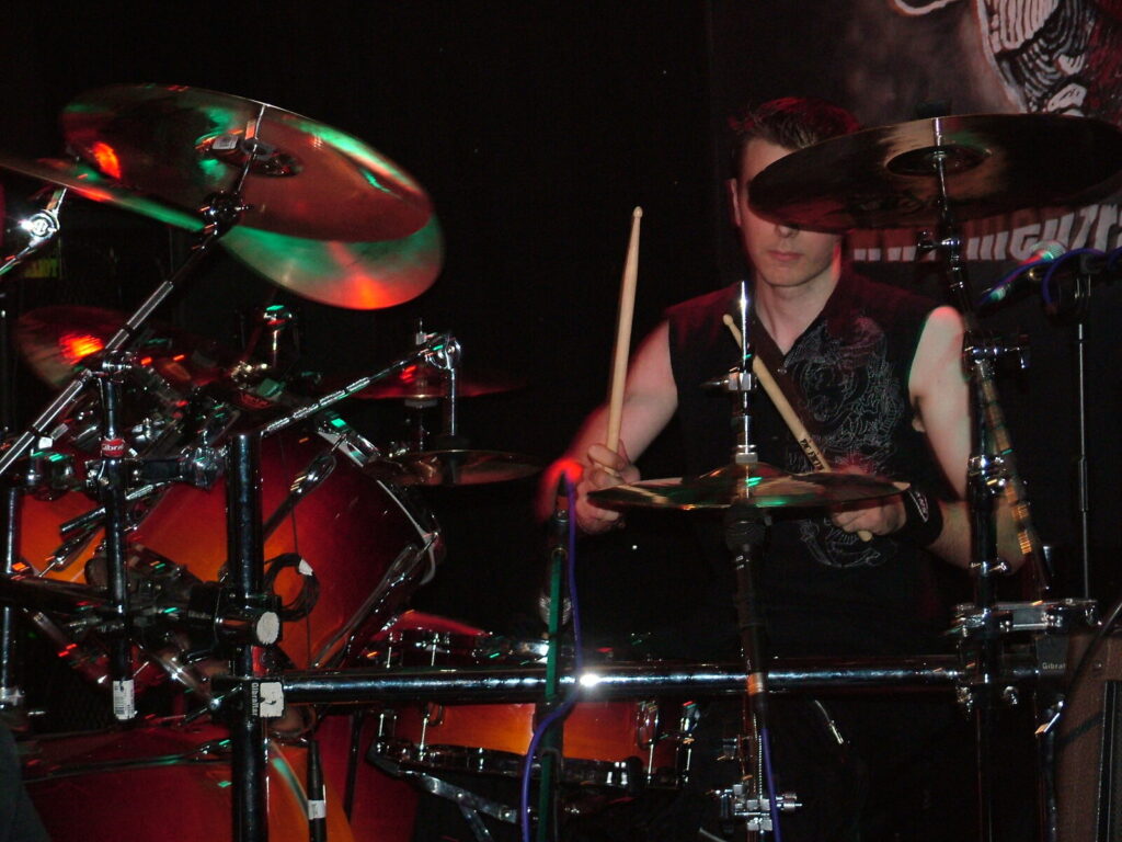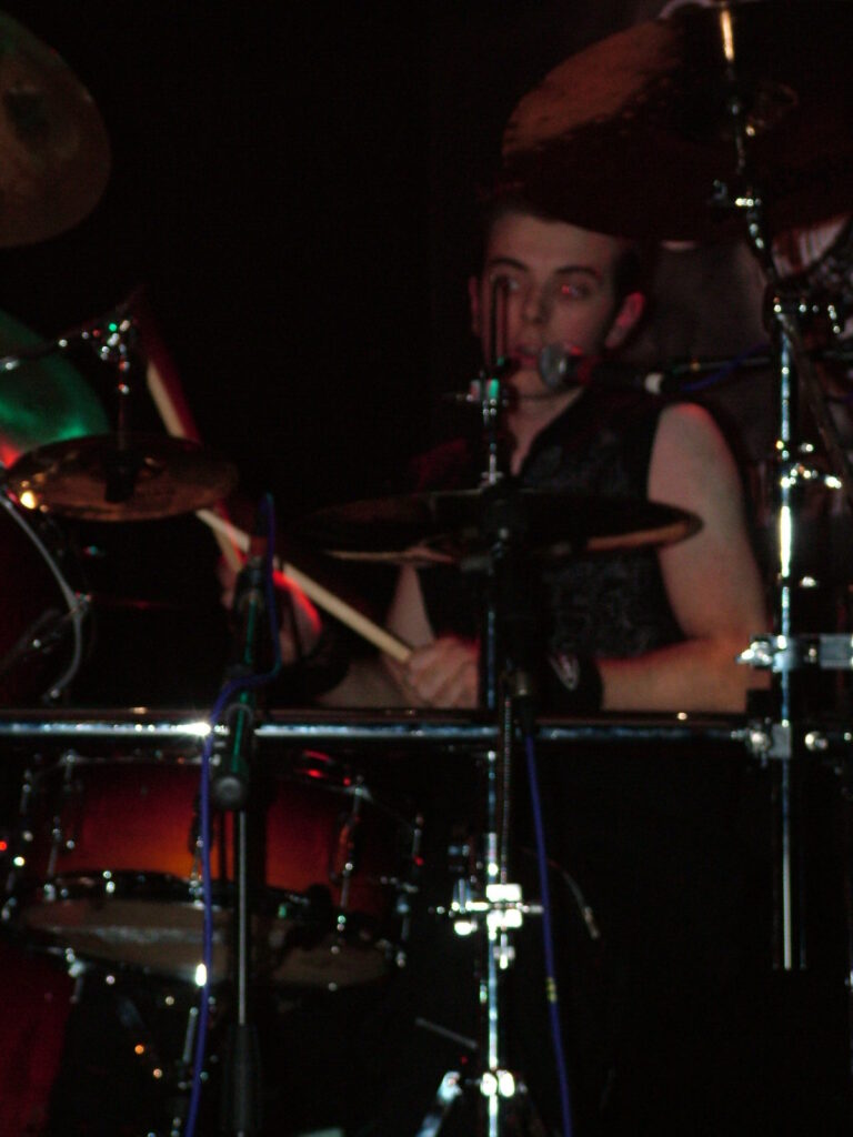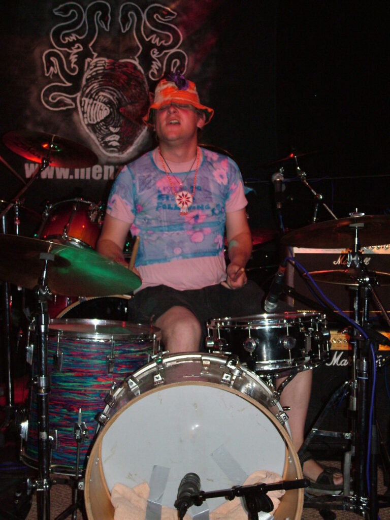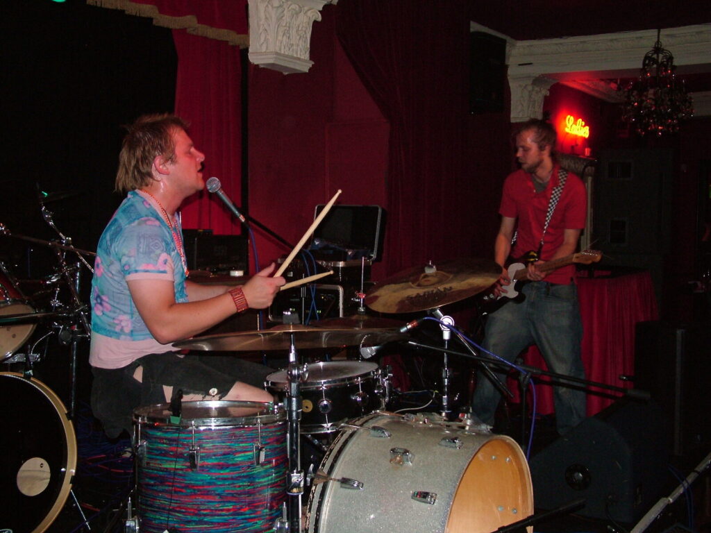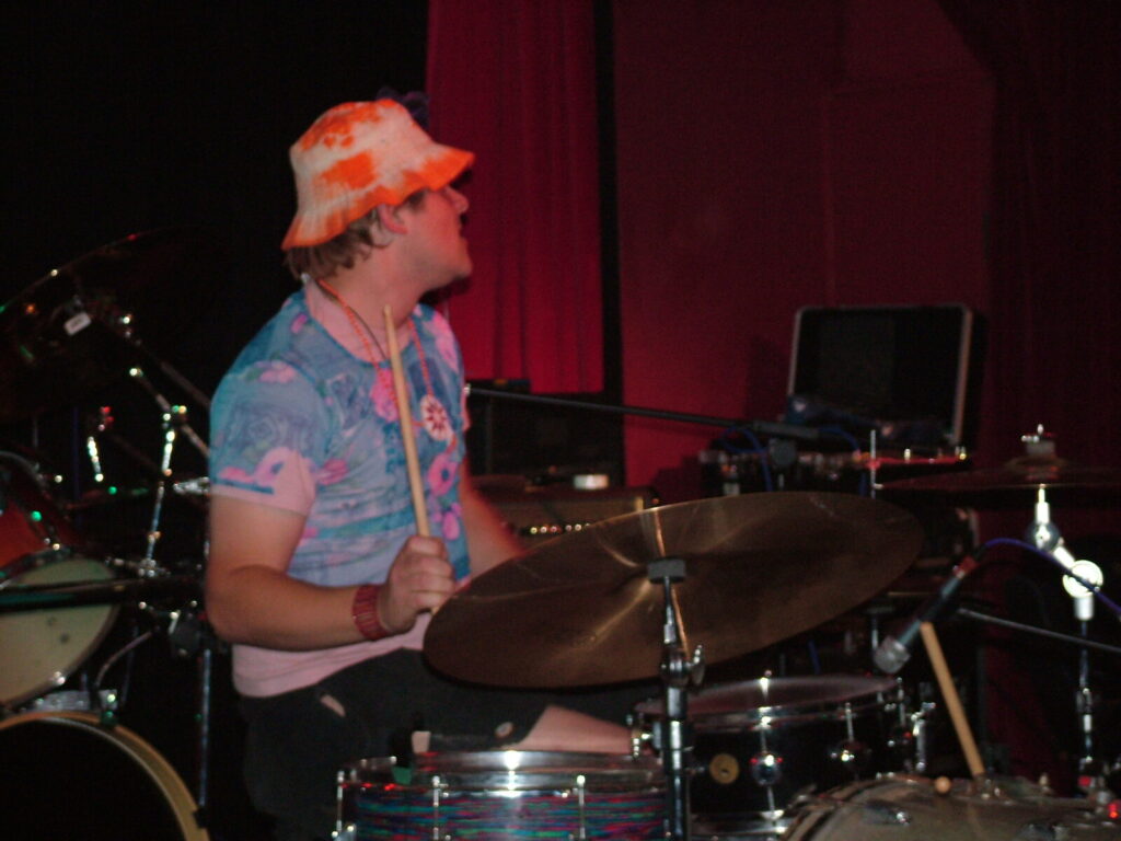 smashing his bass drum off the stage and wandering round the crowd in a daze, hitting his snare until he breaks both sticks.