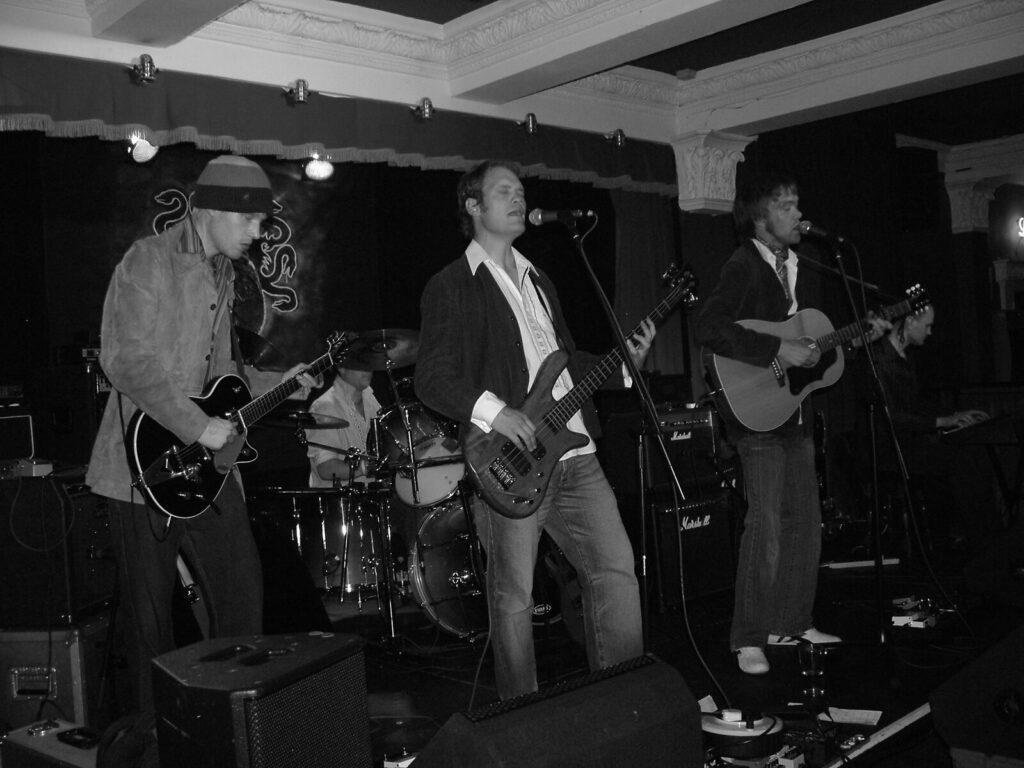 So we’re at The Cabaret tonight. Why? You might ask. Well, tonight’s menu is slightly mouth-watering, with a chaotic start from one of Nottingham’s most flamboyant bands, Big Gay Following. Even though they’re line-up might seem unconventional, with two guitarists, absence of bass player, and a crazy drummer randomly screaming, BGF somehow make a sound that’s beautiful, energetic and hurtles into your brain like a burning runaway train.