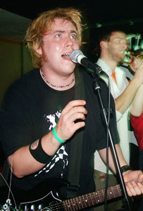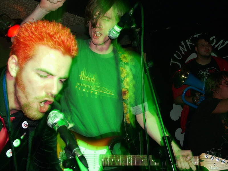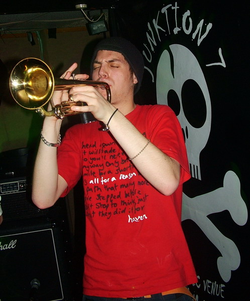 Next up are another band from further afield, this time it’s a taste of crazy ska from London’s Mumrah. The first thing that we noticed about this lot was how much they change, mixing ska-core, punk, 70’s funk rock and traditonal reggae ska into one big fun basket. The bass moves really well and between that and the drummer, who used varied and interesting beats and fills, the songs have weird yet strong structures. The guitars burst in and out and interchange between crazy riffs and catchy chords and with the horns adding even more diversity and random-ness this is impressive stuff. Using mass harmonies, in which ever member sings including the drummer, Mumrah create infectious and quite breath-taking music. This is truly original ska and with the consant movement and changes in style, tempo and dynamic its like nothing you’ll have heard before. Most bands that change their dynamic this often miss out in the melodic stakes but this is what makes Mumrah so remarkable, each section of each song is really catchy and moves so well. It is like each track is made up of several smaller songs that have bred into one all-conquering monster of funk ska. Experimental, original, diverse and catchy, this is simply awesome music and proves again how good the underground music scene is right now, these guys should be massive.