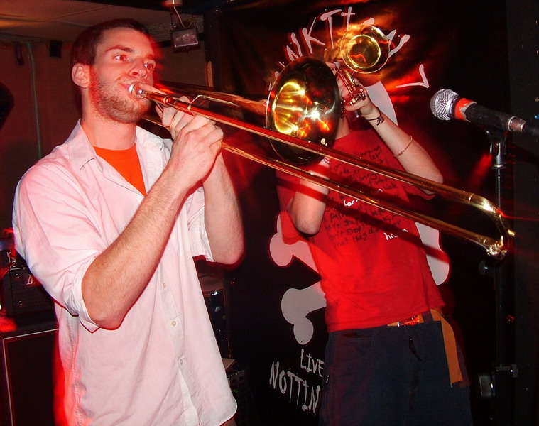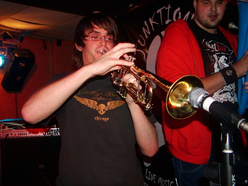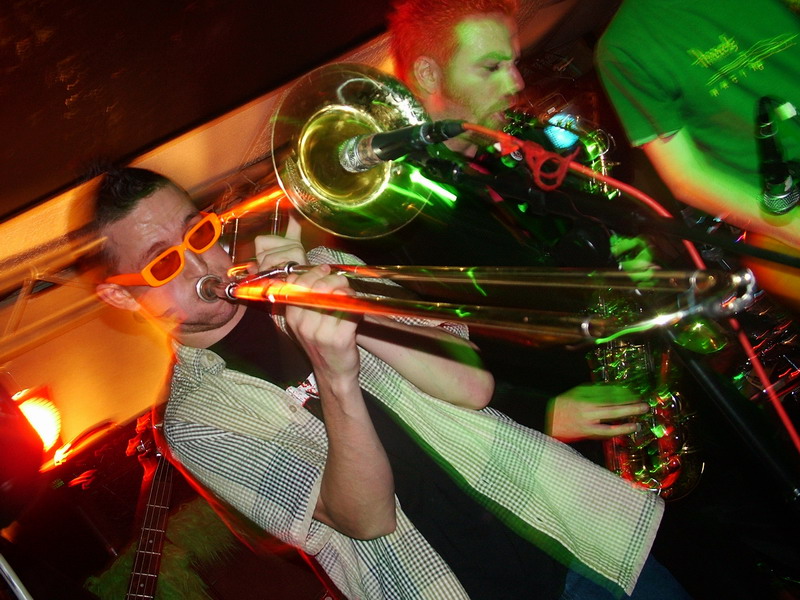 So we have seen bands from Peteborough, Derby and London, now to finish this great evening of fun, happy and dancable skanking ska madness, we have Nottingham’s own ska kings and one of our favourite live bands, Weeble. Since discovering the joys of Weeble a few years back Saggy Pants have witnessed them support many awesome bands, we’ve danced our Saggy Pants right off to many of their blistering sets and seen them go from strentgh to strentgh, they continue to pull out all stops and impress us again tonight. Using huge, catchy melodies and hooks with fierce and fun guitar riffs, walking, funky bass breakdowns, powerful and crushing drums and masses of horn and vocal action, Weeble once again put on a unstopable show, and had the whole audience going nuts. I haven’t met anyone yet who does enjoy a Weeble gig, they put so much energy into their set and with songs that are so fun and catchy you will find yourself singing along, dancing around and smiling from cheek to cheek. Their newer songs seem to have all the charms of their older material and with a slightly heavier ska-core influence it smashes the melodies into your brain, making sure you will be humming Weeble’s songs all day long. If you like punk/ska then you should really check Weeble out and if you don’t, then you probably should check Weeble out too, as they always put on a great show and with their upbeat and uplifting music they guarantee a good night out.