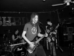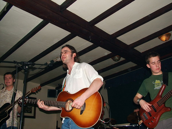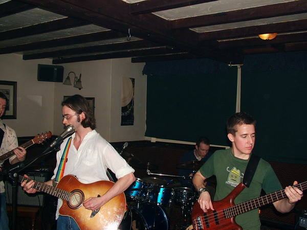 Having found our way to the Frog And Onion and eventually settled ourselves down with a pint-a-piece, we discovered that the band we had come to see, were in fact, the only band on. So keeping the crowd entertained for a whole evening lay solely in the hands of Grain. They didnt seem to be phased by such a challenge and with a smile, got straight on with breaking us into the first half of their set, with obviously inspired, heavily metaphoric lyrics, beautifully fragmented basslines, interesting, subtle but perfectly calculated drumming, and sweet ringing, back-porch guitar. It was hard to believe that they could have possibly have known, where each other was in the song, it genuinely looked and sounded like one immense jamming session, that was somehow constructed and accurately pre-meditated. The frontmans extravagant and expressive vocals came through really well in the smaller and cosier environment of the pub. There were a few effects used on the bass, and possibly the odd one on the guitars, but apart from those, the general sound of Grain is raw, busy, well seasoned funky, country, trip-rock.