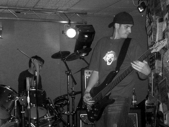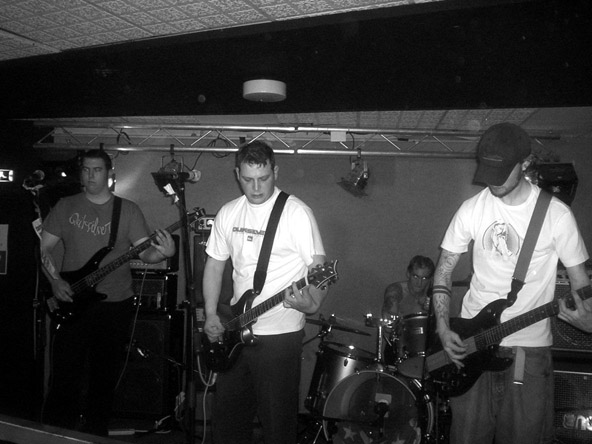 Bazooka Joe are heavily distorted punk, which is certainly upbeat and gets you moving. It's a shame that the same energy that's behind their music doesn't come out on stage. They couldn't be more static if they tried, and this didn't do them justice. Most definitly influenced by bands such as NOFX, Dropkick Murpheys and similar, there is so much distortion only about 4 chords between the two guitars, that any distinctive bass sound was lost completely. The vocalist's voice showed signs of some weakness, especially at the 'not so rowdy' parts. Bazooka Joe are piss-head punk rockers with clever, funny and downright cheeky lyrics, and an upbeat set that warms the cockles like a good cheap whiskey.