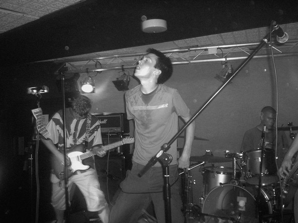 The Authentics had ample stage presence. Both guitarists were energetic, and with their rolling riffs, impressive yet subtle solos, and drums that smack you in the face, these guys were definitely stomping punk-rock that you couldn't help moving to. The vocalist/bassist had a cheeky geezer style husky edge to his voice, which suited their sound and although the lyrics were simple, they were well thought out. It was all very well practised, you couldn't pick fault with these guys musically. Perhaps lacking a little in variation, but a very enjoyable set.