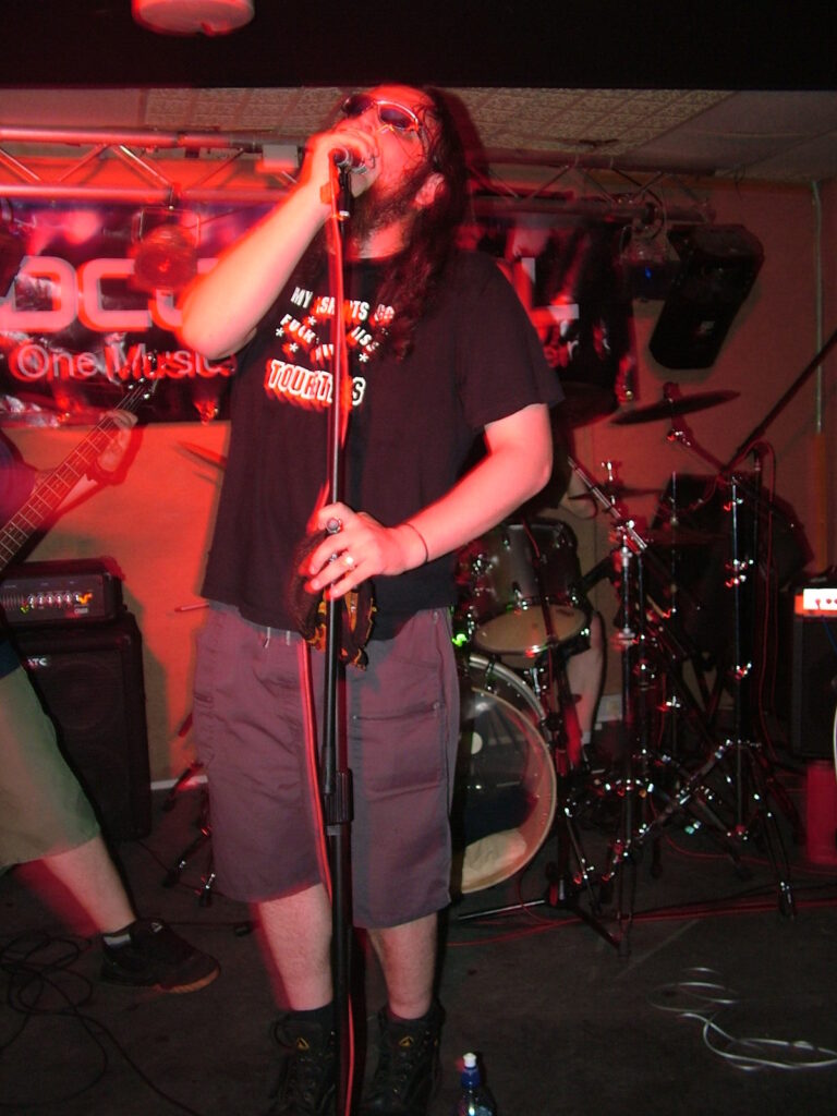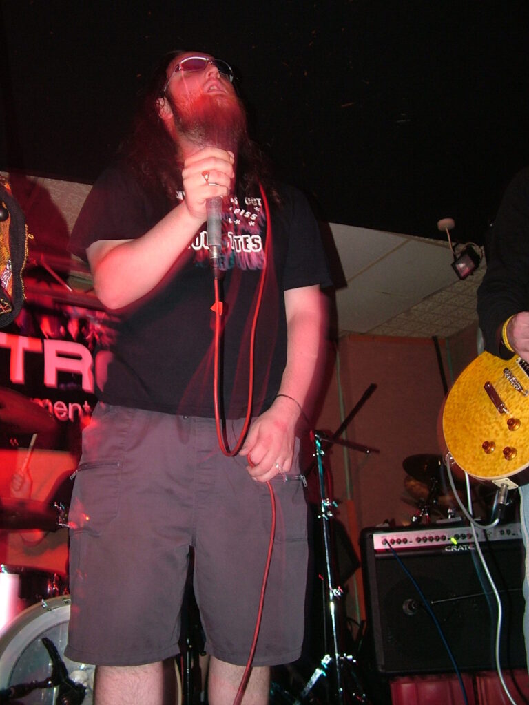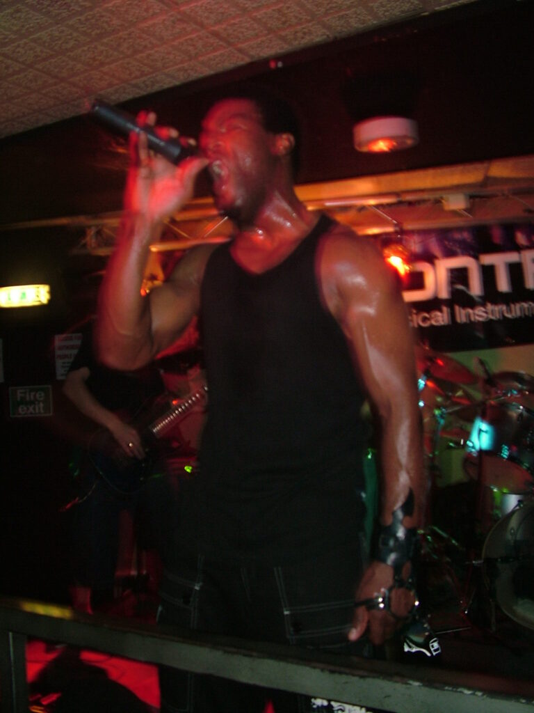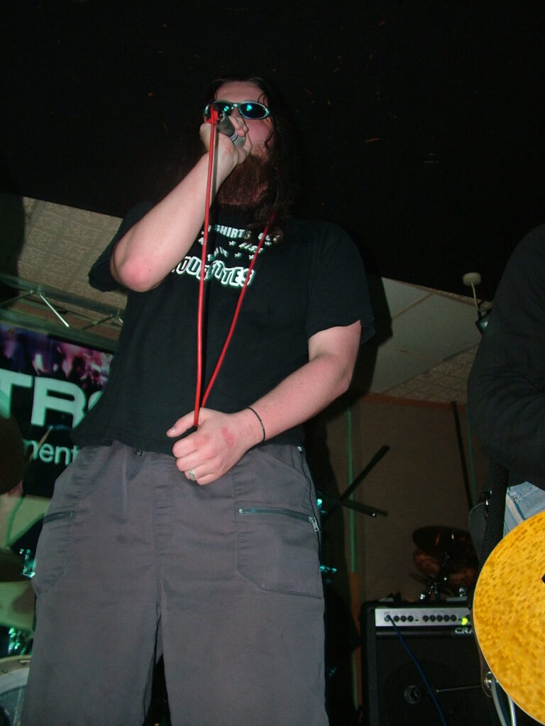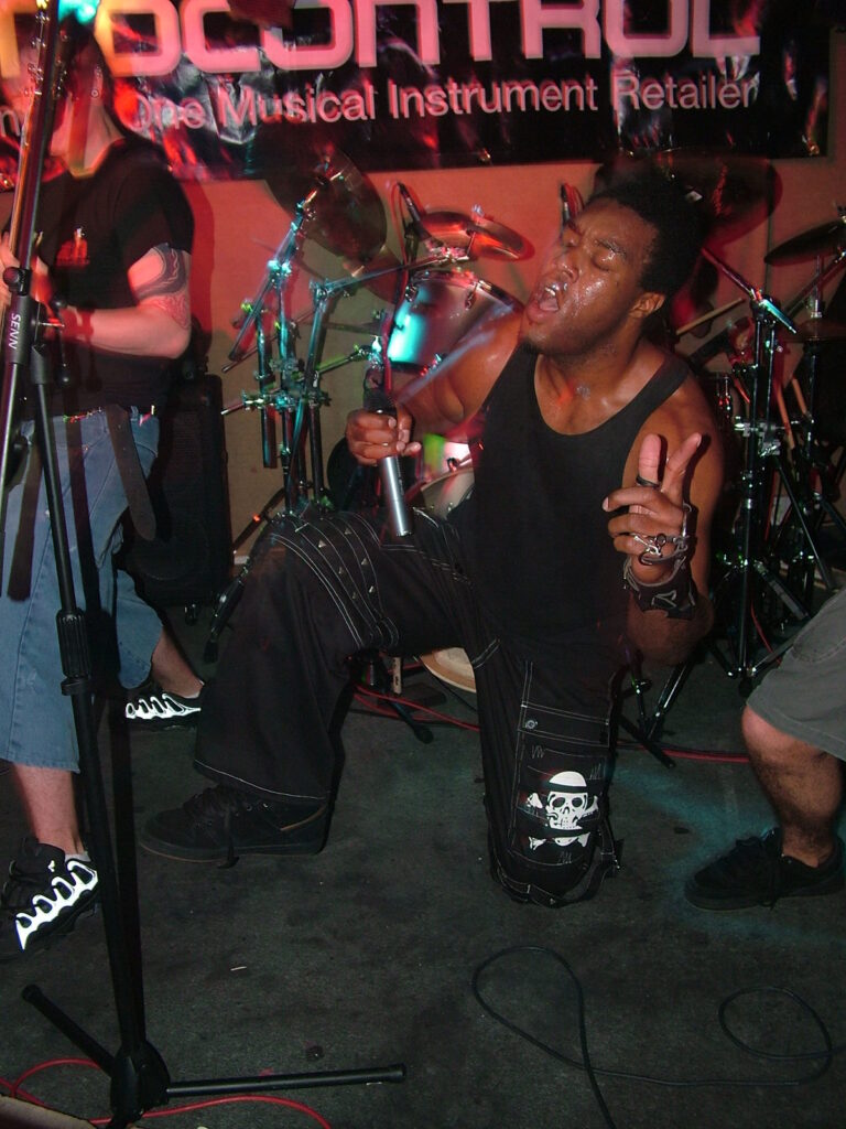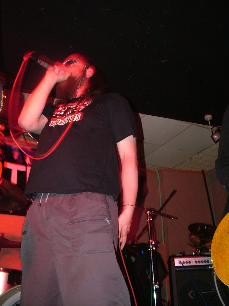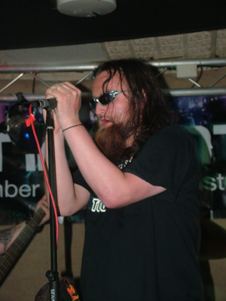 sings with a deep growl that has a nice grunge feel before letting fly into grunting, intense screaming and ranting.