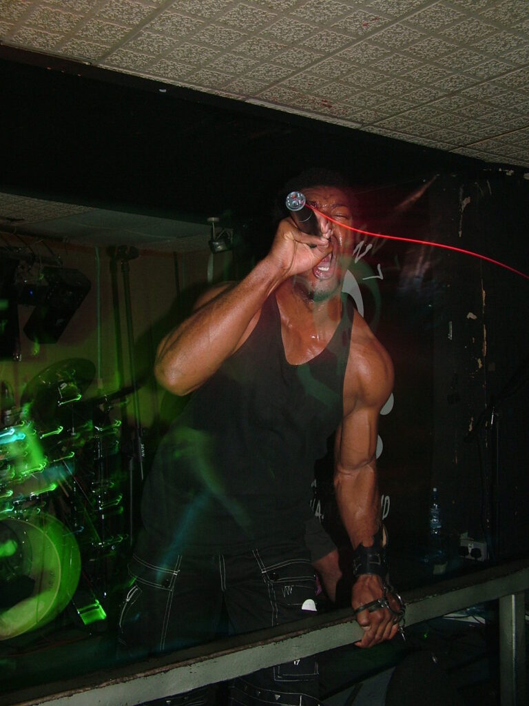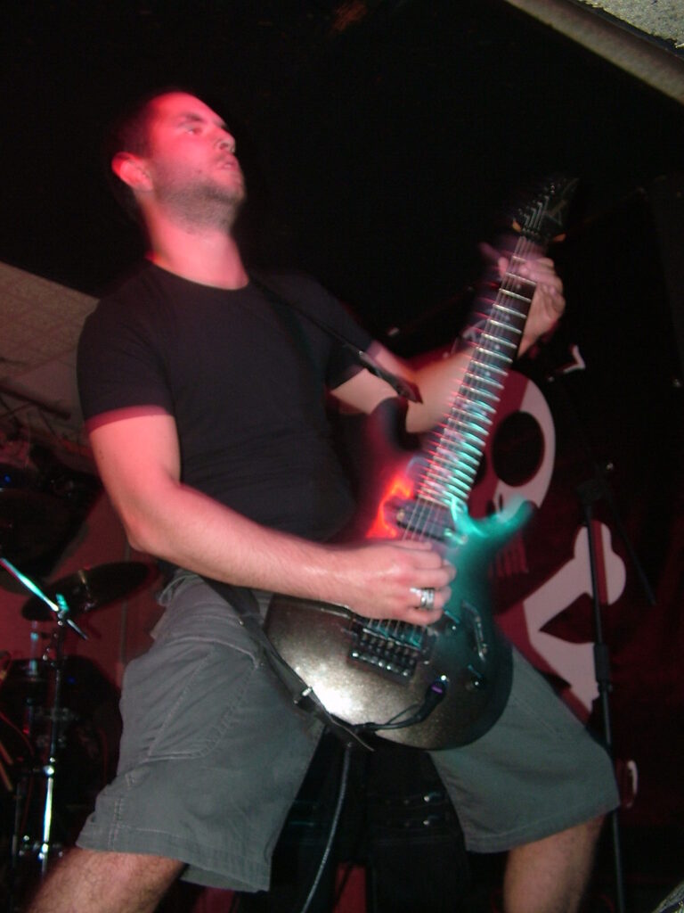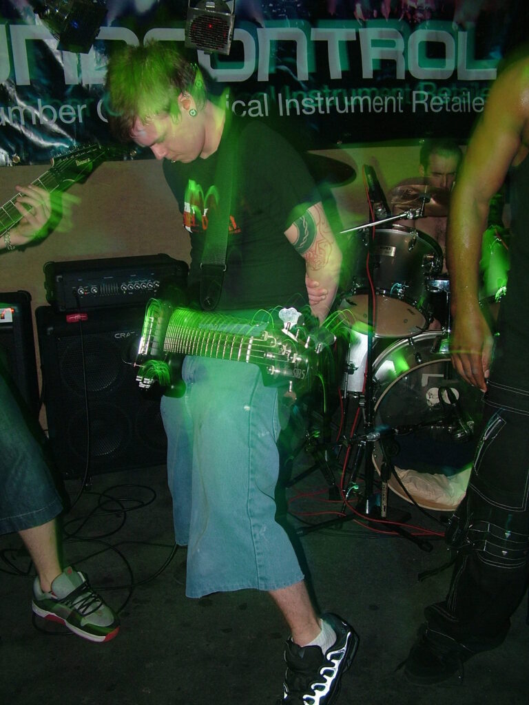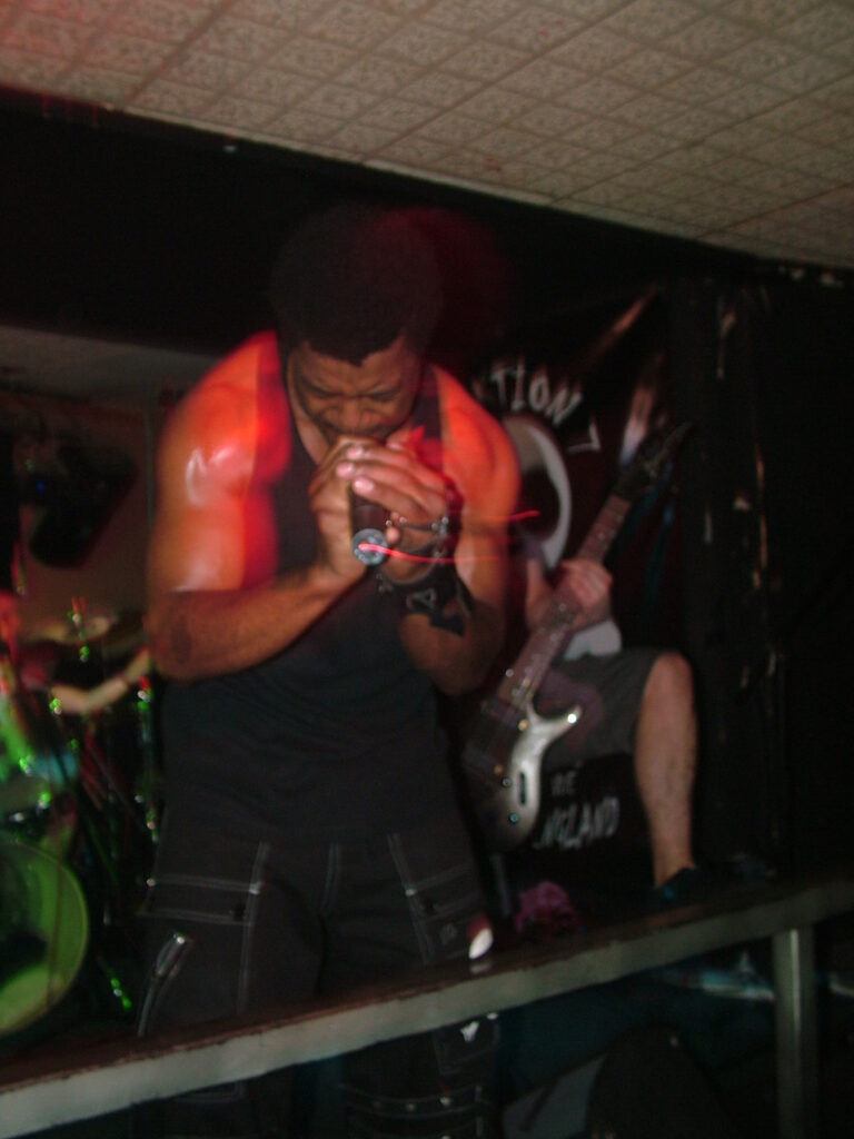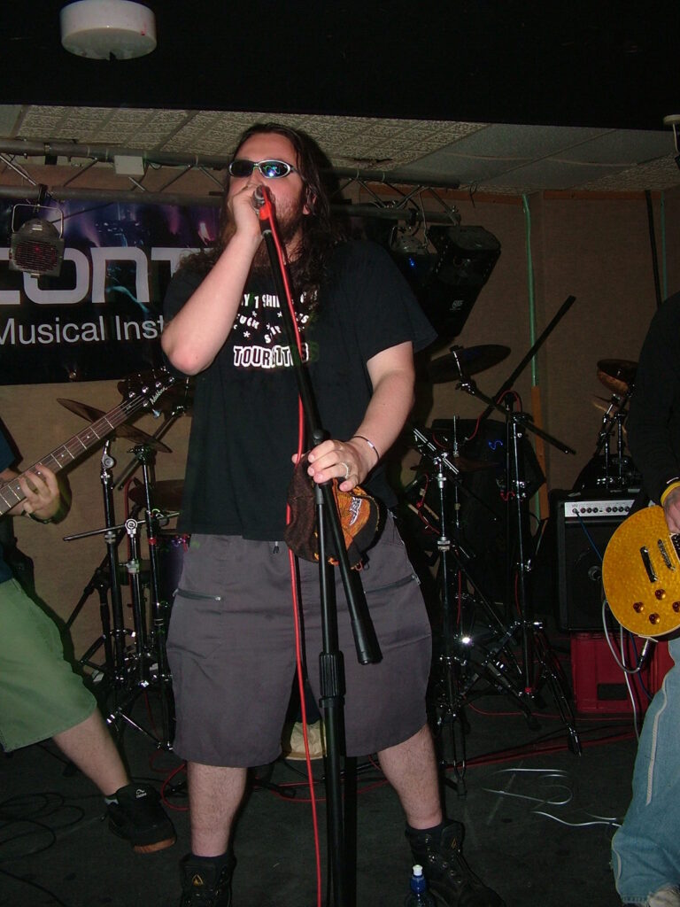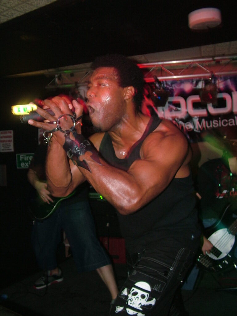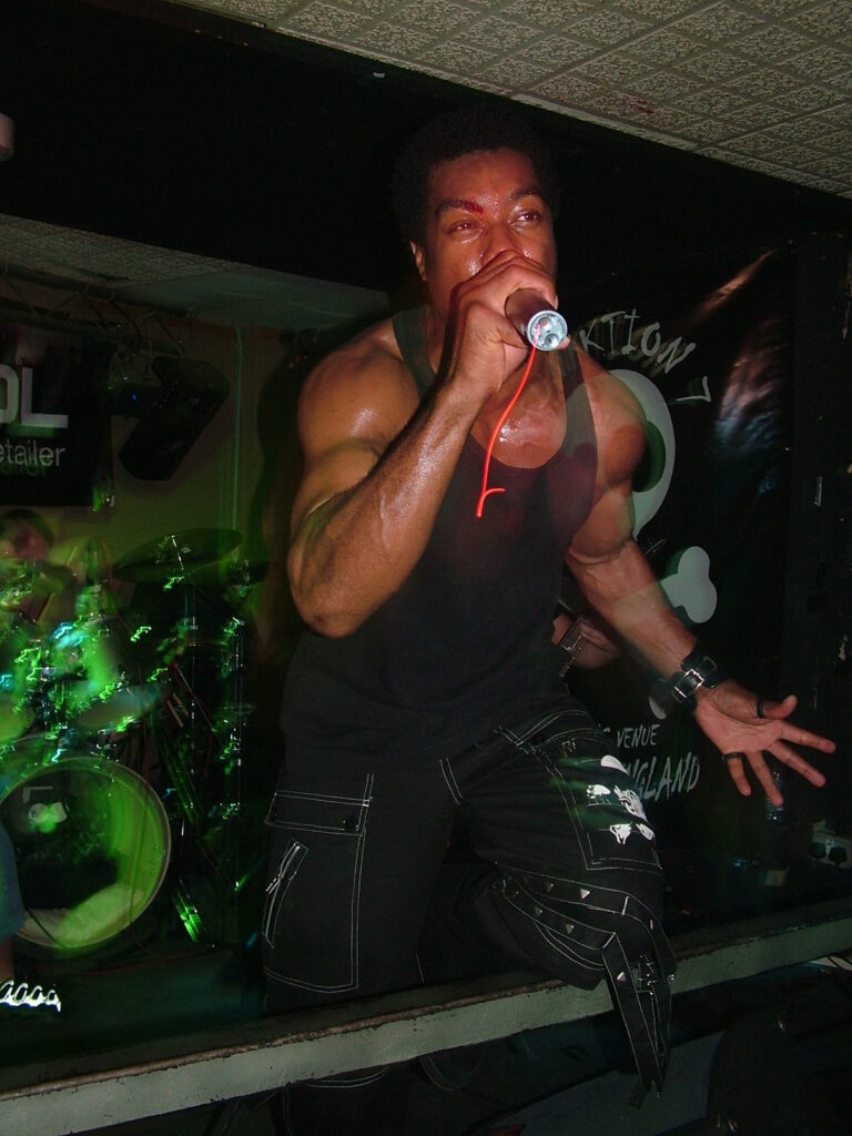 sings with a deep growl that has a nice grunge feel before letting fly into grunting, intense screaming and ranting.
