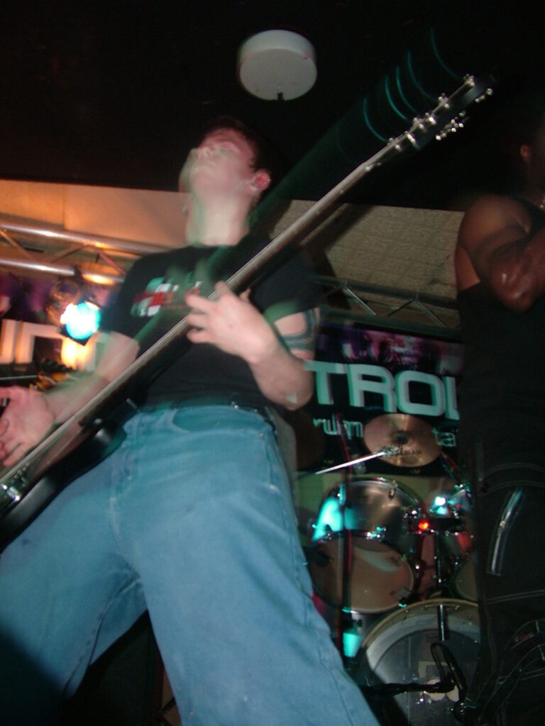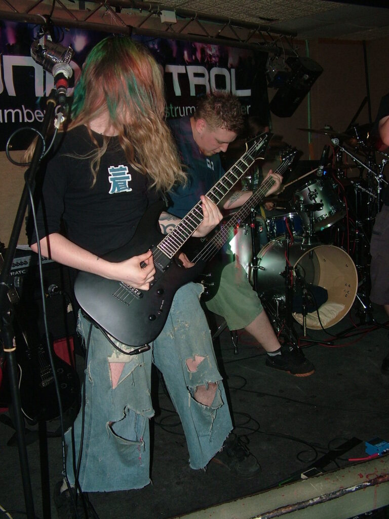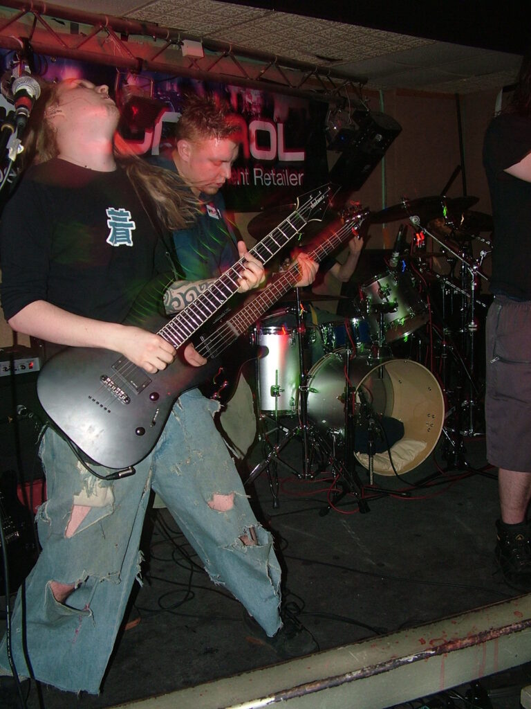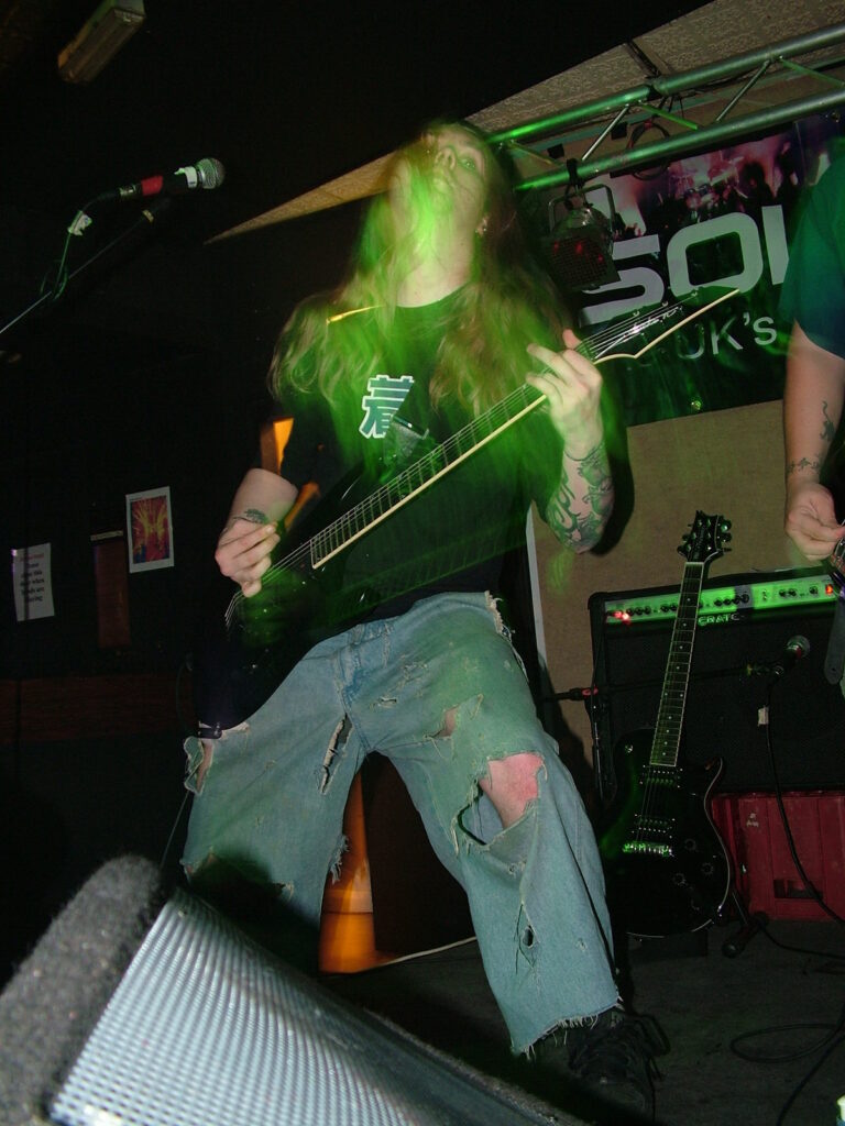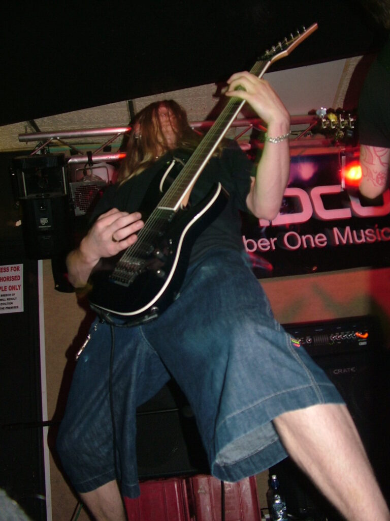 between robotic verses, insane cackles and lung-wrecking screams that sounded like a small animal being castrated. This combined with the guitars which played in unison, gave Without Eyes real beef to their heavy, angry metal.