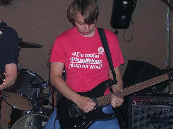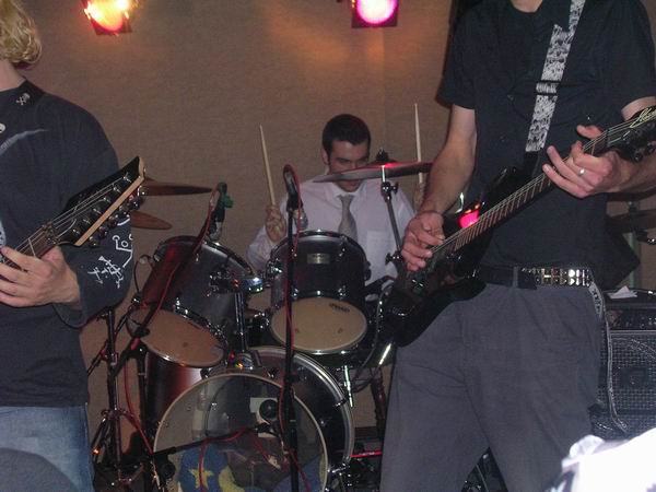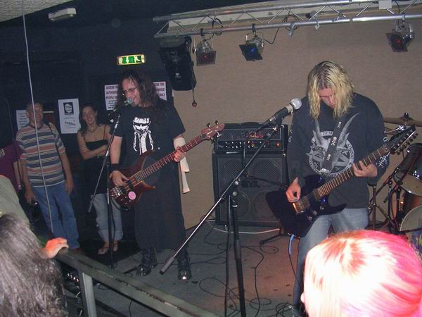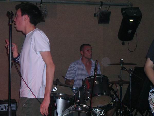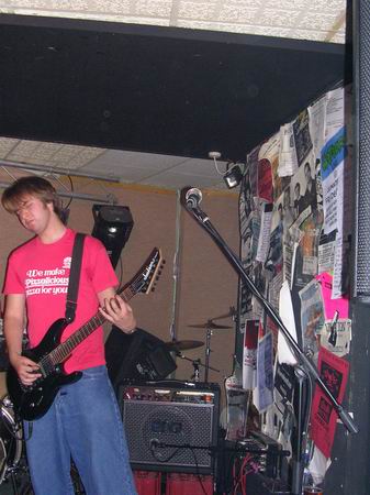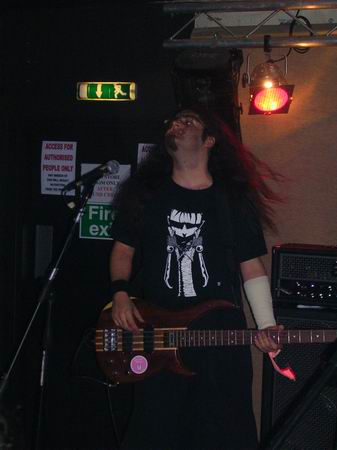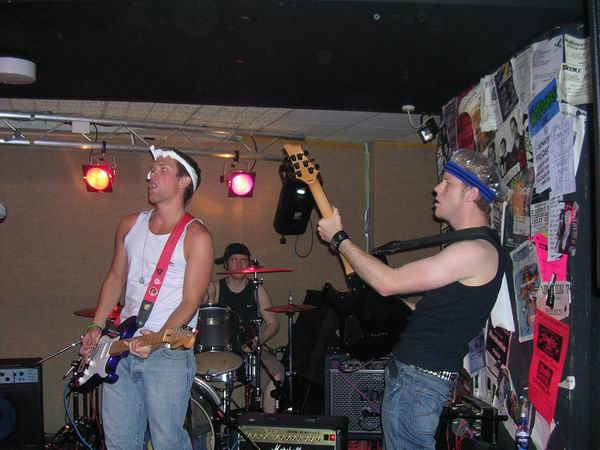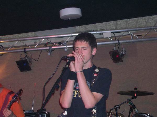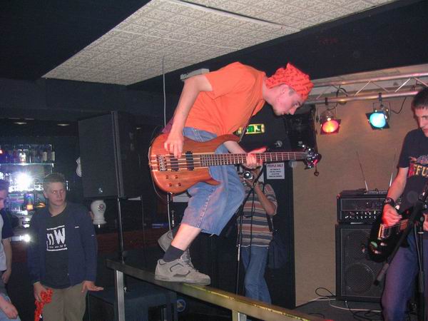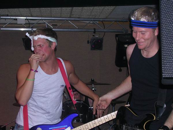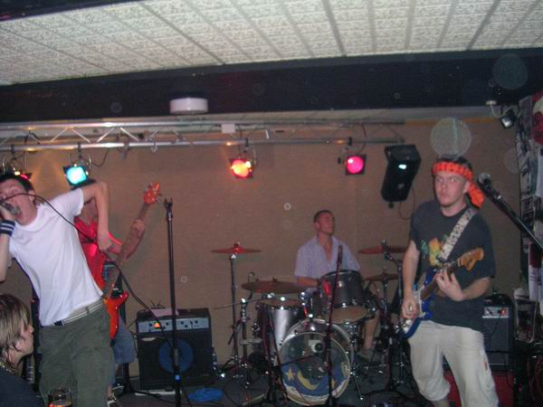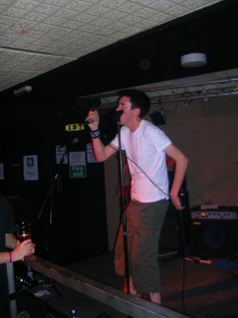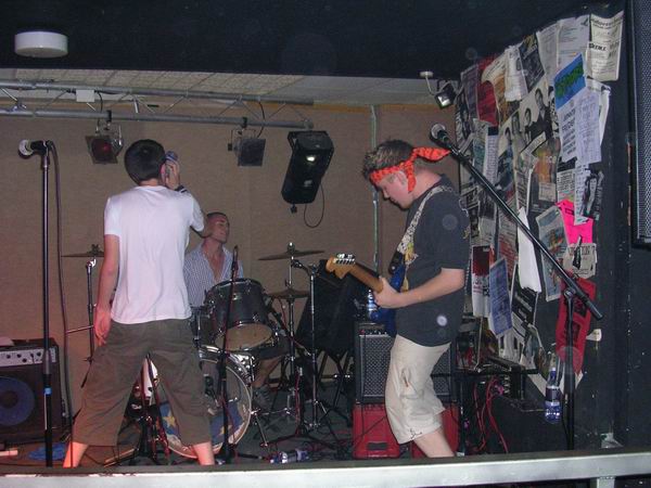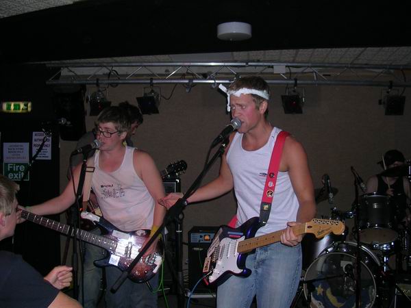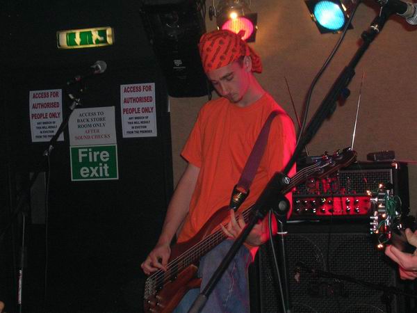 ManPlayingKazoo were up next, and a very professional 30 minutes it was too. They somehow manage to get so many things going on in each and every part of their songs, that you don’t know who’s playing what riffs, nevermind who to look at. Brilliant technique from all members and thoughtfully complex combinations of bass and guitars solos and a continuous clamour of noise coming from the ends of the drumsticks ensured that the music was just as enjoyable as, well, the first time. The vocals lacked clarity in this showing, which was a shame, cos the lyrics aren’t half bad. They tried to get the audience to sing along at one point but that fell through, because no-one actually knew the lyrics, or, were too busy laughing (along with the band) at the fact that it fell though, and getting drunk.