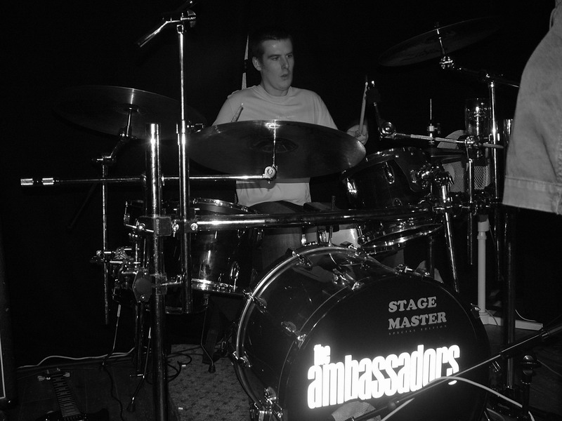 Now it’s the turn of The Ambassadors. I’ve met the band before- a long time ago though, way back during my time on P+D (Mansfield 103.2fm!) but have not gotten round to seeing this band at a gig until tonight. They’re a Nottingham based 4 piece, one of whom has no less than 3 keyboards (which is a nightmare when you only have 2 DI boxes..!) They bring us a kind of psychedelic (due to the presence of the keys) pop-esque (it’s very friendly on the ears) Uk indie thing (er.. coz it’s got guitars in it?!) and annoyingly, a lot of the punters decided now’s a good time to wander off.. not sure why, I reckon they were all here to see the other bands and went through to have a chat. Maybe they weren’t too impressed with The Ambassadors to start with. I have say “to start with,” because as the set progressed past its halfway point, they started to filter back in- with inquisitive faces! I have to admit, I was guilty of something similar. At the beginning of the set, I thought “yeah- these sound ok” and took to taking notes, and as the band moved from tune to tune my opinion of them stepped up a level each time, and I found myself thinking “these are great” but was confused by it. Hence the inquisitive faces! Their style is of a darker side of what they do, and is carried by great structuring and the presence of a bright vibe- like a “pub piano rock” feel lying in the shadows. The band know, however, that the audience aren’t 100% attentive to the music tonight, even though a great response is received from the audience, but the band really put their all into it and put in a great set. Good band!