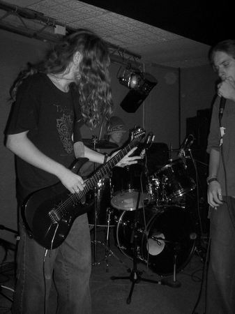 The first thing that struck me about Circles End’s sound was the bass lines, the bassist made it seem effortless as he spewed out powerful and intricate riffs. These guys reflected the sounds of Saliva and Cold, with a good mixture of slow melodic rock, and ‘smack you in the face’ grunge-metal. The guitar was ripping with treble and distortion, and one particular song called ‘Last Words’ had a rather kick-ass solo that shut you up and made you listen. The vocalist had a powerful, but limited voice; he used what he had well though and achieved the desired affect. They seemed so well rehearsed, so when I found out that it was only their second ever gig, I was obviously impressed. Having said that, their lack of experience together showed in their nervous start, and their rigid stage presence, but this was overcome before long.