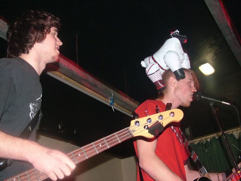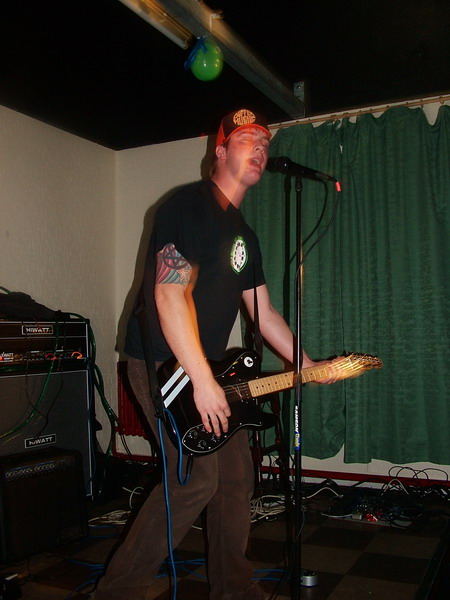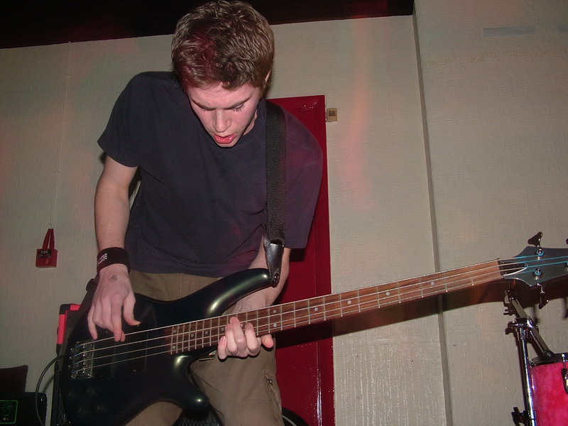 Next up was a band we’d seen before at Junktion 7, it is Derby’s Hoofbite. They kick straight in with their driving, punchy punk. The guitars are really grinding and gritty, supported well by the deep bass. The drumming is once more fairly simple but crashes around and with some nice fills and plenty of mixed up beats, it is very effective. The vocals can’t always be heard, but they mix up the patterns well and have catchy structures. The most impressive thing about Hoofbite though, is the way they change tempo, with such ease. They seem to mix fast and slow really well (or maybe fast and even faster) either way, it’s very tight. With the ringing guitars and catchy melodies, Hoofbite have a similar feel to maybe MXPX, with traditonal, upbeat, punky, chaotic structures. Some better use of the bassist’s backing singing might have given them more presence vocally, but apart from this Hoofbite seemed to be a fairly accomplished band. Fast, fun and simple punk, made interesting by complex tempo changes.