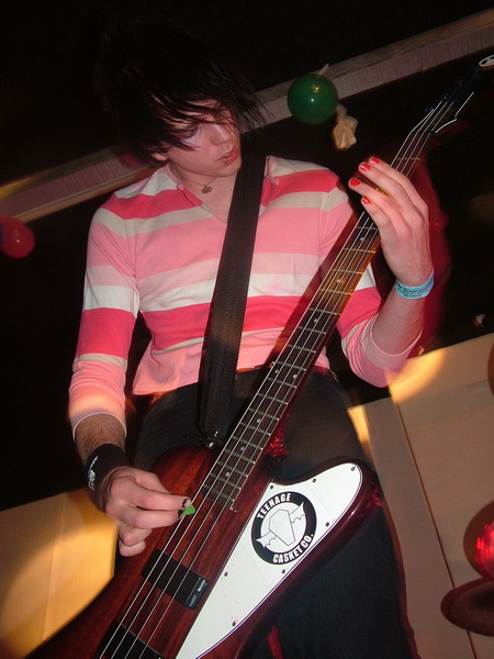 Last time we saw Yello Snow it was a rainy night in Peterborough, they seemed about 7 years younger, 3ft smaller and they didn’t have enough songs to fill their slot, and so ended up playing ‘Teenage Kicks’ twice. So we thought we’d grab the opportunity to see the progress we’ve heard so much about. They seem to have grown massively in confidence and their crowd interaction was the thing that made them stand out from the other bands tonight. The music is fairly bog-standard punk, but with catchy vocal patterns and well written riffs, it does get your feet a’tappin’. The drums and bass are both tight keeping the songs running smoothly, without ever leaving known punk territory. The two guitars changed effectivly, but could have possibly interacted better at times. With catchy melodies and a decent mix of fast Americana punk with the snotty Cockney charm, Yello Snow put in a solid and bouncy performance, which was full of confidence and energy even managing to slip their myspace address into a chant.