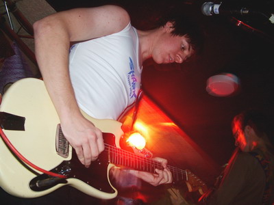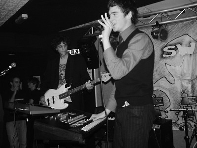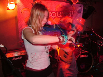 Today is no exception and as I read back the notes of this gig images coming flowing back but its all a little confused specially since we saw Stickers for Kids twice in the space of a week. Luckily, Stickers for Kids are pretty damn good, mixing a punky indie rock feel with a nice twist that is supplied by a roaming fiddle, interesting guitar effects and a soft yet strong female vocal. Tonight their sound is a lot stronger than the first viewing earlier in the week. With the fiddle really coming through strong and adding diversity and an extra dynamic to the songs. The vocals also come through stronger and mix a soft edge with blunt faster rants. The songs are based round some really nice moving walking bass, tight and strong drum beats and a guitarist who not only mixes his sounds well but also has a good stage presence, which the other members sometimes seem to lack. The guitar is high on treble but with the soft edge of the violin, Sticker for Kids songs have a good balance, the guitarist also knows how to use his effects and mixes eerie sounds with a deep and dirty distortion to give the songs more bite. The nice changes in tempo add energy and feeling and it has a fairly original sound, it would be nice to hear more of the fiddle in some songs and maybe some more harmonies, but the band seem to compliment each other very well. Not the finished article but an interesting work in progress.