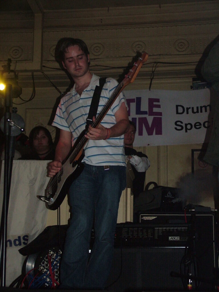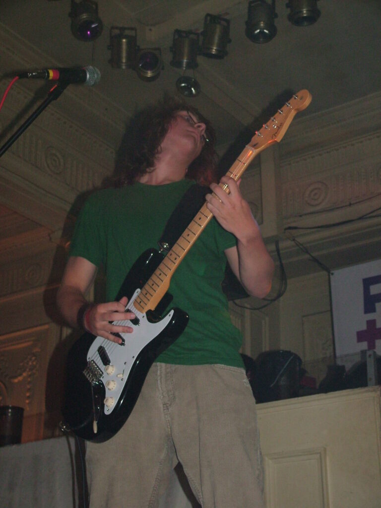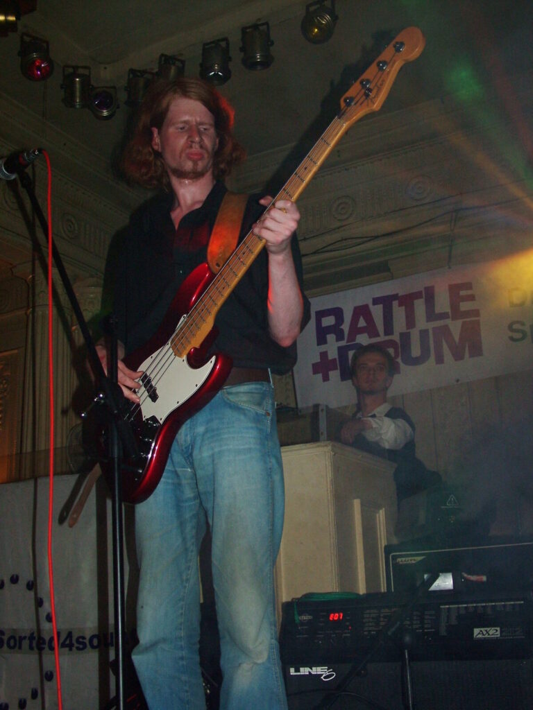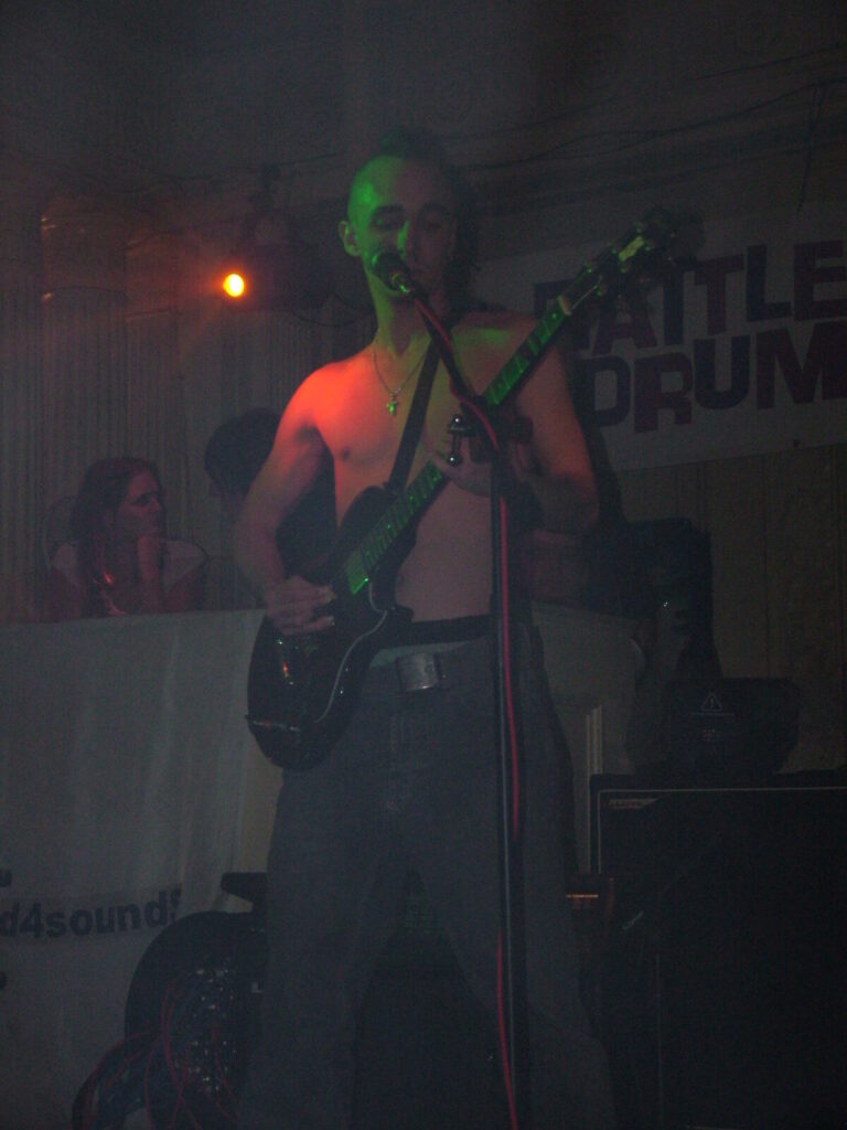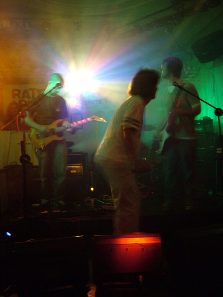 Next to take the stage are Love Burger, using crunchy and dirty distortion mixed with clear and punky vocals, they put in a passionate performance that’s full of conviction. The bass roams round nicely and adds beef to the sound and with the thumping drums kept it tight. The vocalist moved round the stage well and his voice was clear and strong and also built up the emotion and intensity of the songs well. They have a really rocky sound with a good range of influences from punk, metal, grunge and indie and with a nice psychedelic edge at times. The guitar mixed driving riffs with sharp and smart lead breaks. They were very tight and put in a professional performance, with the moving guitar melodies and driving bass and drums being topped off by the catchy in your face yet still melodic vocals. The only thing that slowed them down was the bass amp that kept packing up, which was unfortunate, as Love Burger sounded really interesting.