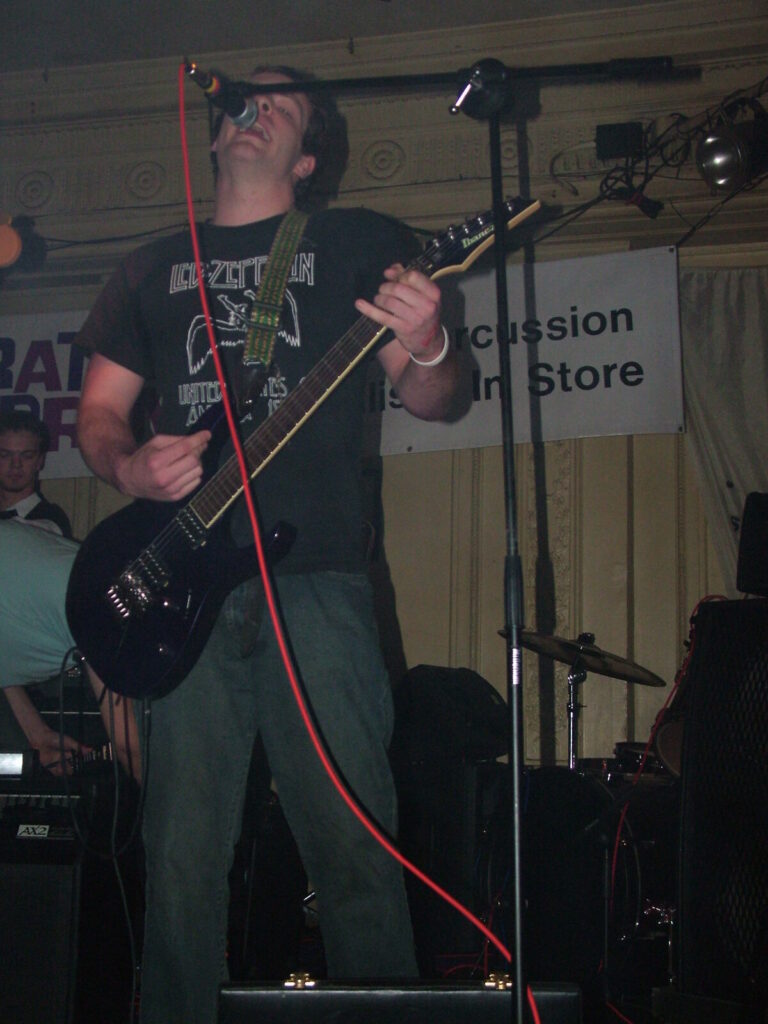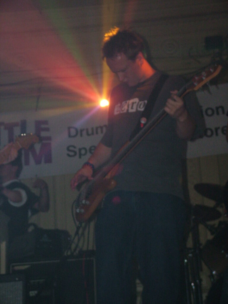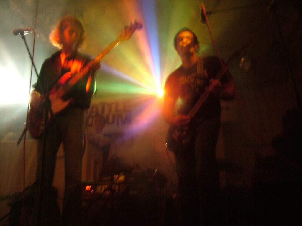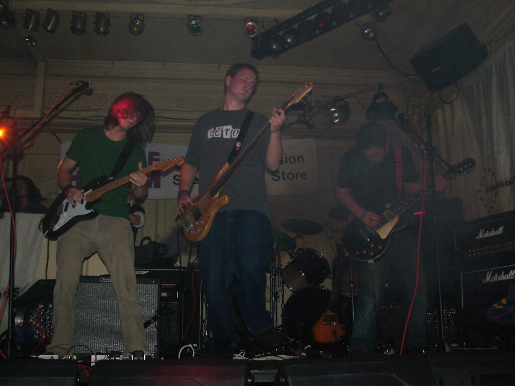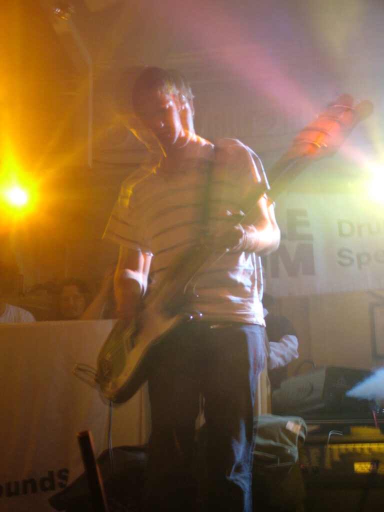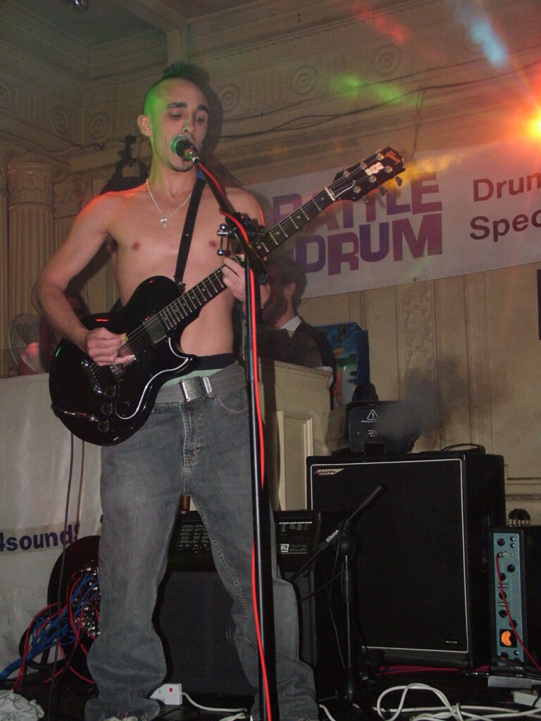 Next to take the stage are Love Burger, using crunchy and dirty distortion mixed with clear and punky vocals, they put in a passionate performance that’s full of conviction. The bass roams round nicely and adds beef to the sound and with the thumping drums kept it tight. The vocalist moved round the stage well and his voice was clear and strong and also built up the emotion and intensity of the songs well. They have a really rocky sound with a good range of influences from punk, metal, grunge and indie and with a nice psychedelic edge at times. The guitar mixed driving riffs with sharp and smart lead breaks. They were very tight and put in a professional performance, with the moving guitar melodies and driving bass and drums being topped off by the catchy in your face yet still melodic vocals. The only thing that slowed them down was the bass amp that kept packing up, which was unfortunate, as Love Burger sounded really interesting.