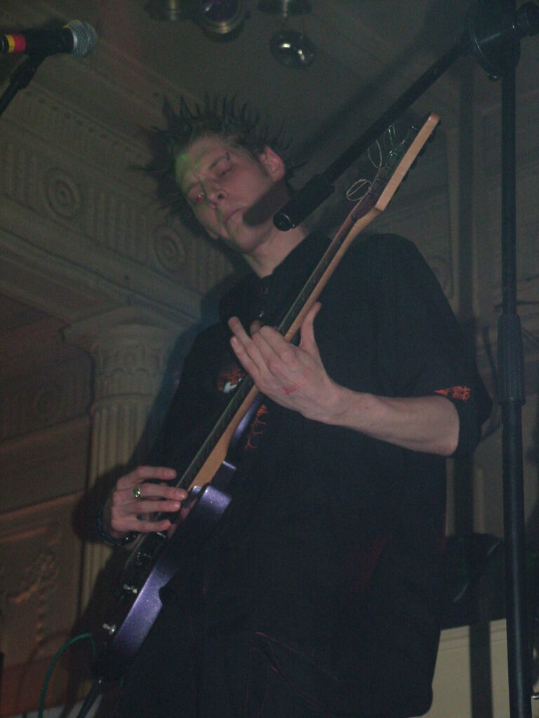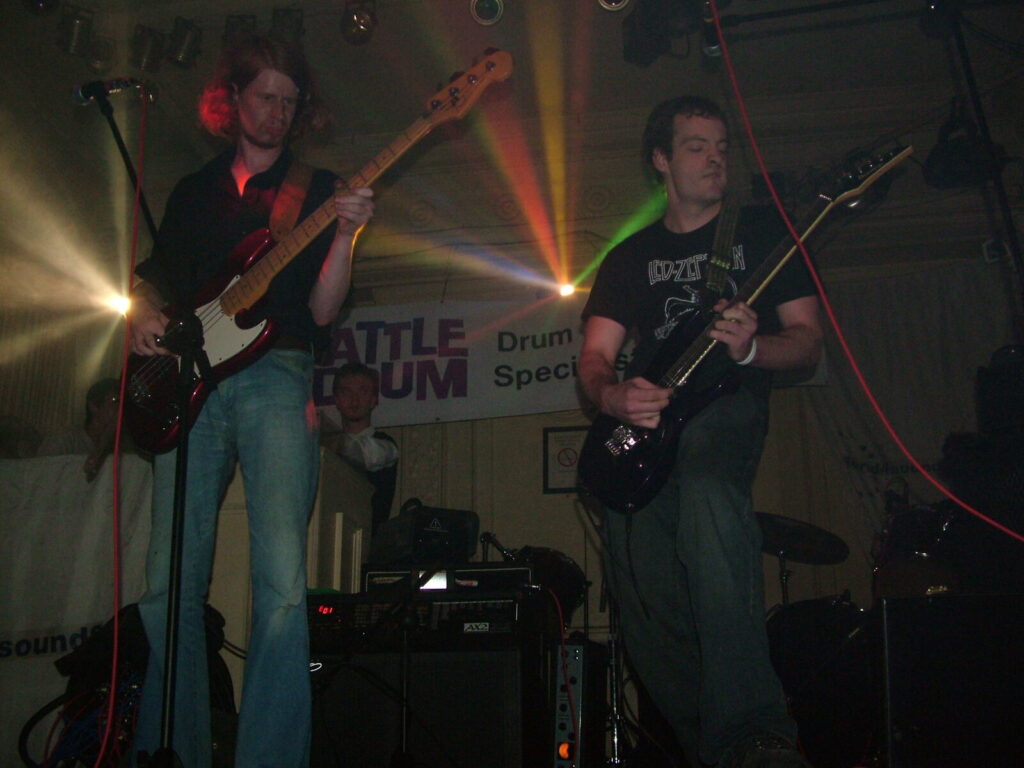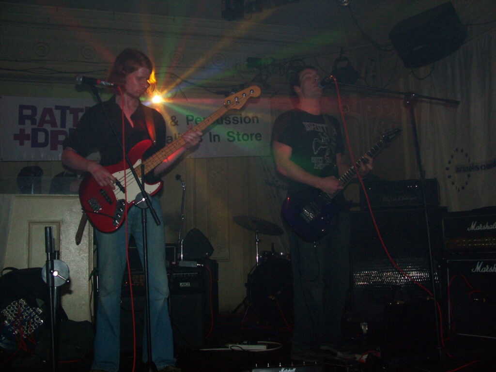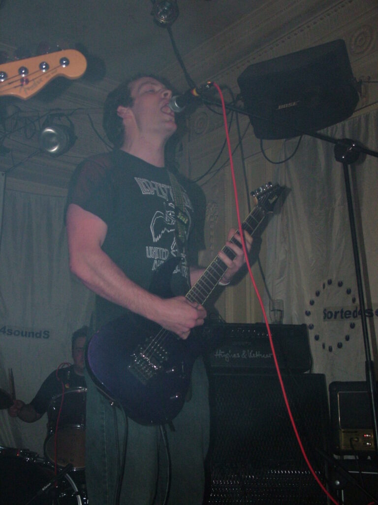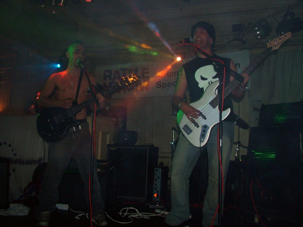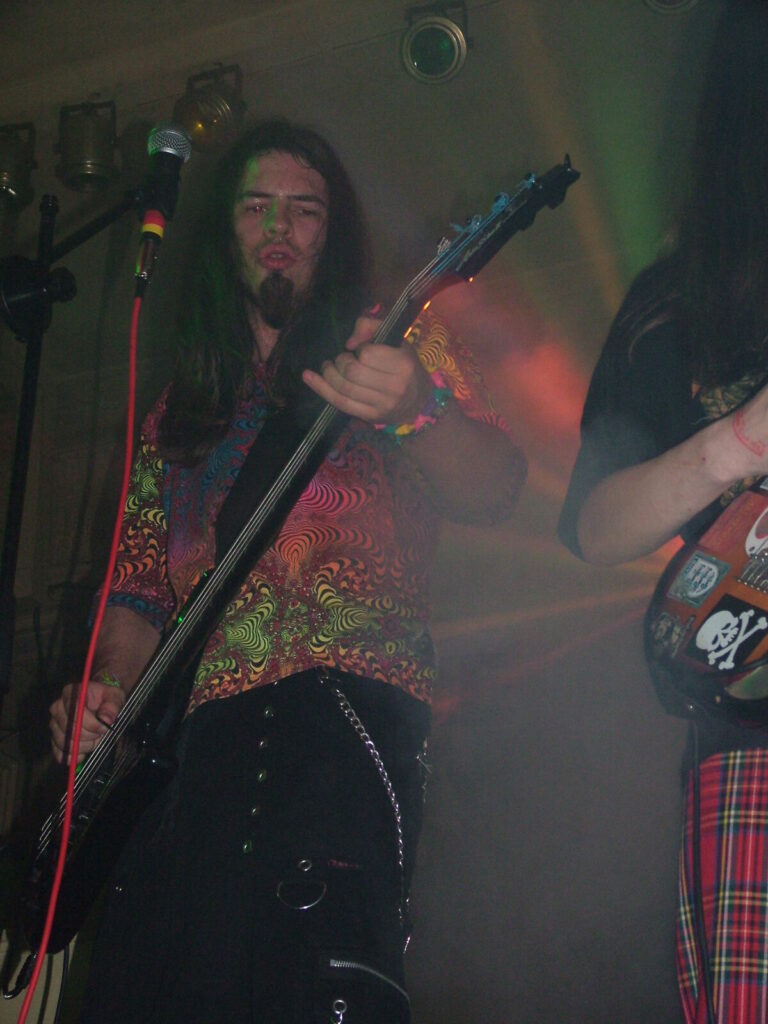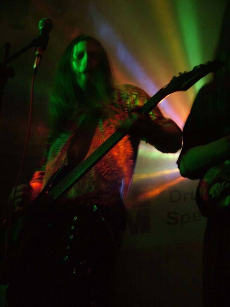 Suddenly the noise level goes up a notch as Malemorphia take the stage. A heavy mix of screaming nu-metal and classic metal with plenty of emotion, with great use of melodic interludes that slowly transcend into chaos. The funky drums and bass kept the sound together, even though the drums seemed to stray at times but still used kit well and used some cool fills. The guitars flew in some great emotional solos that provided extra beef and feelings. With deep grunting lead vocals that were mixed with the guitarist’s more melodic vocal style it worked well. The band had good presence and seemed to play well together, it was a nice, interesting mix of rock and metal and with abit more power in the vocals could be something really good. Their songs built up well and the last song was a completely mind-blowing epic and emotional roller coaster, played with confidence and style and showing some great technique. Impressive stuff.