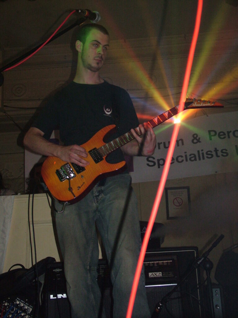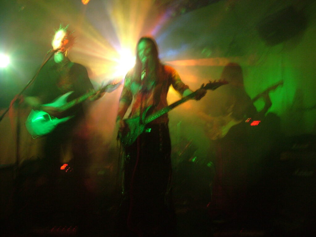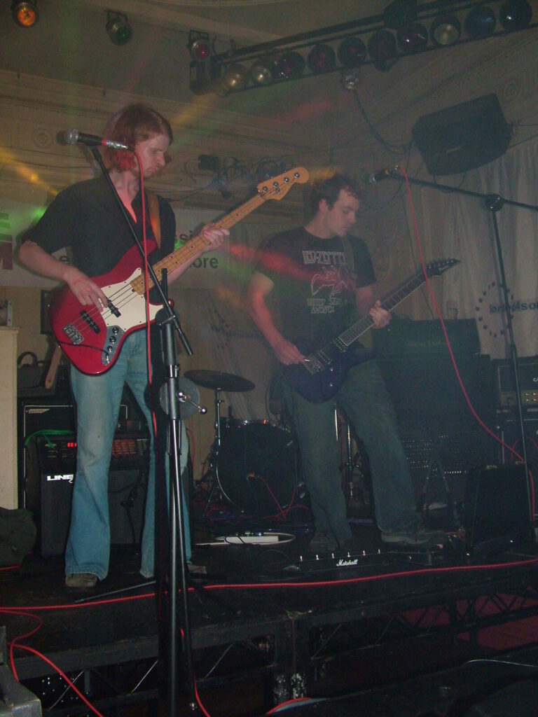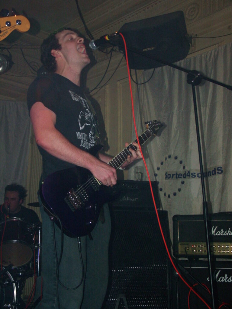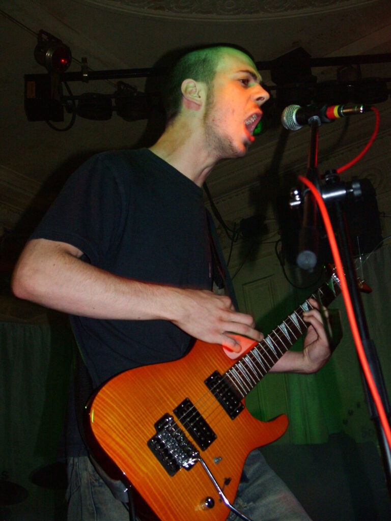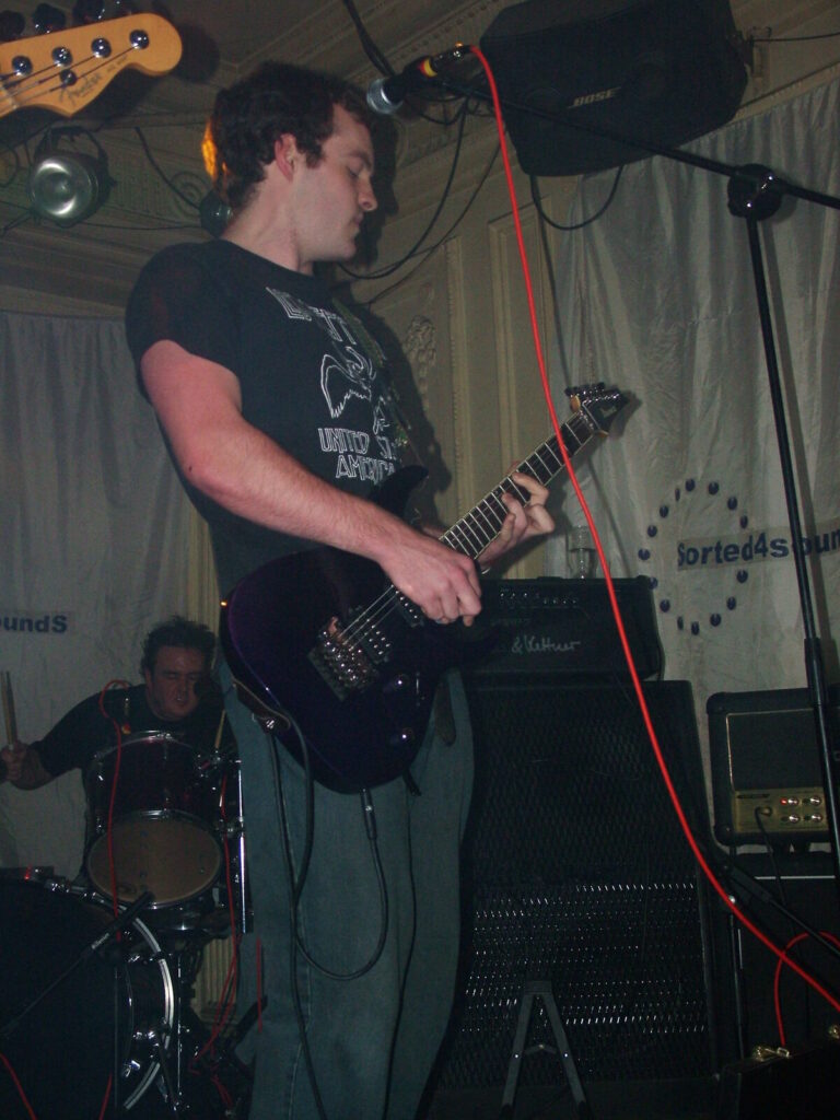 Suddenly the noise level goes up a notch as Malemorphia take the stage. A heavy mix of screaming nu-metal and classic metal with plenty of emotion, with great use of melodic interludes that slowly transcend into chaos. The funky drums and bass kept the sound together, even though the drums seemed to stray at times but still used kit well and used some cool fills. The guitars flew in some great emotional solos that provided extra beef and feelings. With deep grunting lead vocals that were mixed with the guitarist’s more melodic vocal style it worked well. The band had good presence and seemed to play well together, it was a nice, interesting mix of rock and metal and with abit more power in the vocals could be something really good. Their songs built up well and the last song was a completely mind-blowing epic and emotional roller coaster, played with confidence and style and showing some great technique. Impressive stuff.