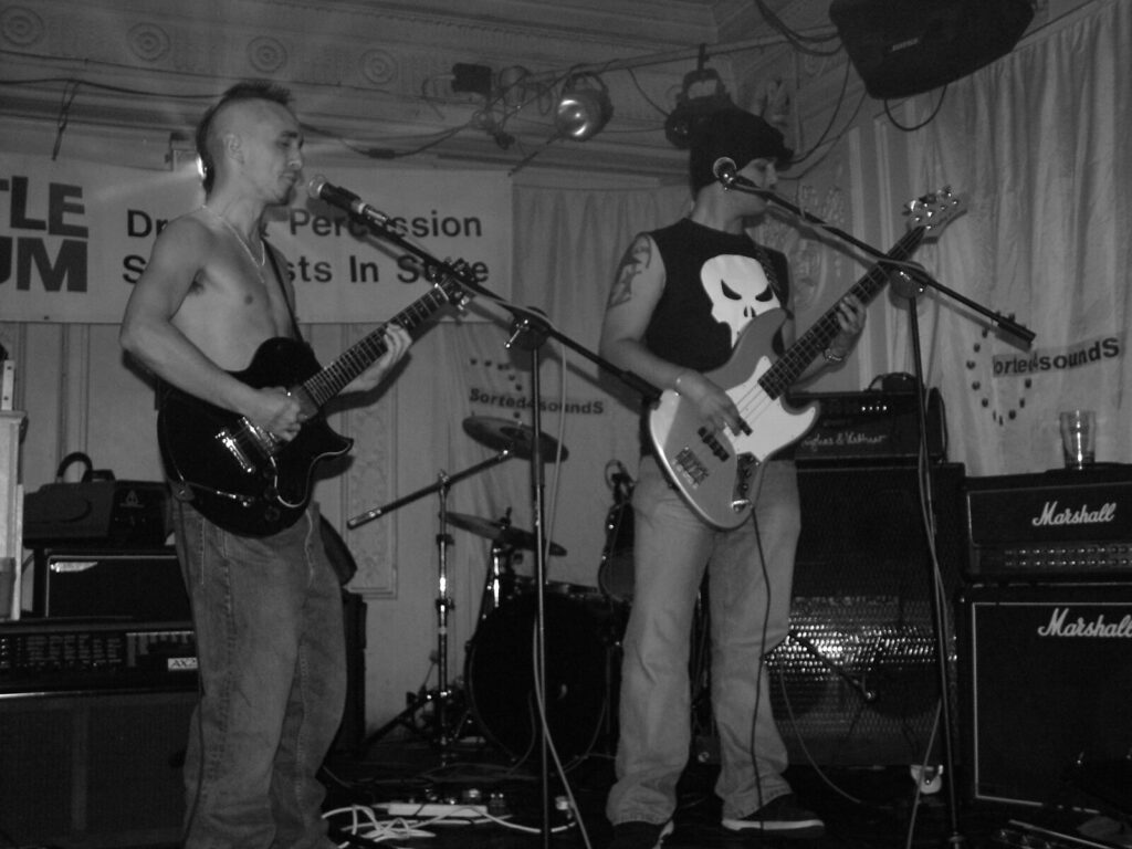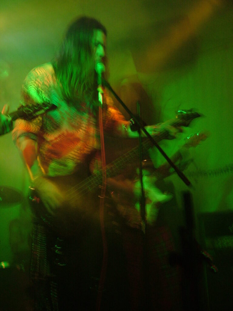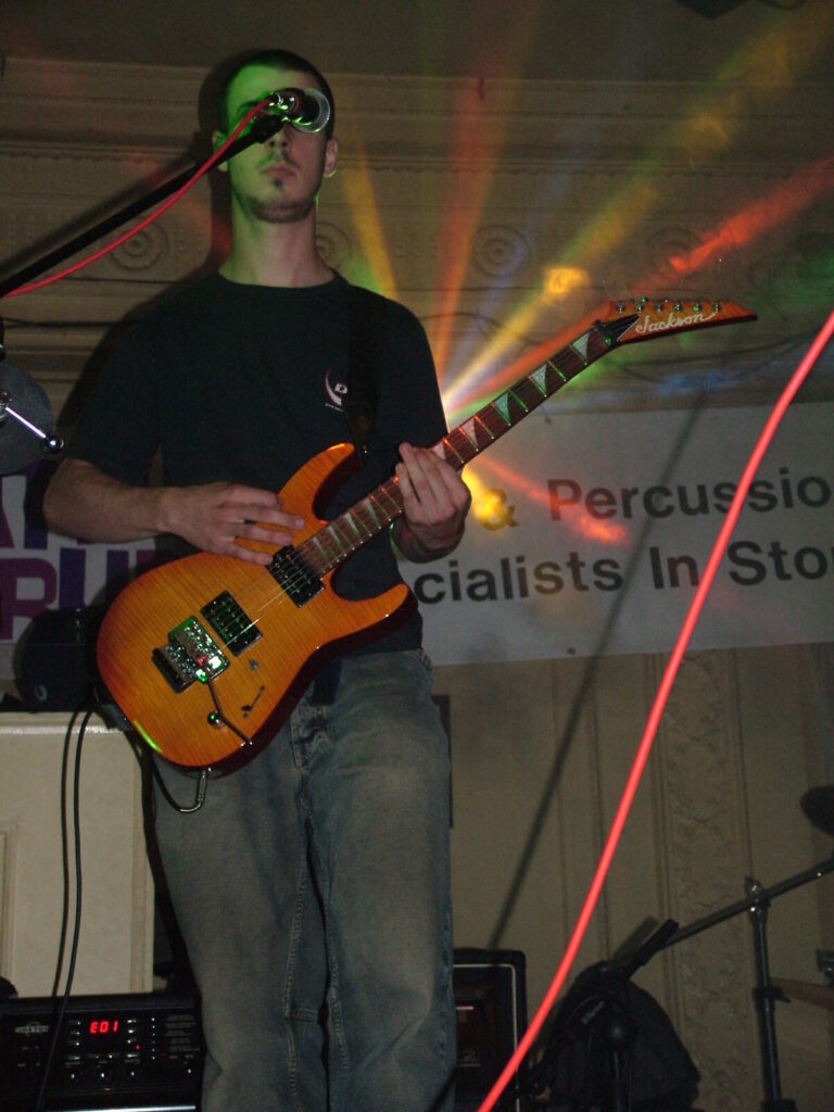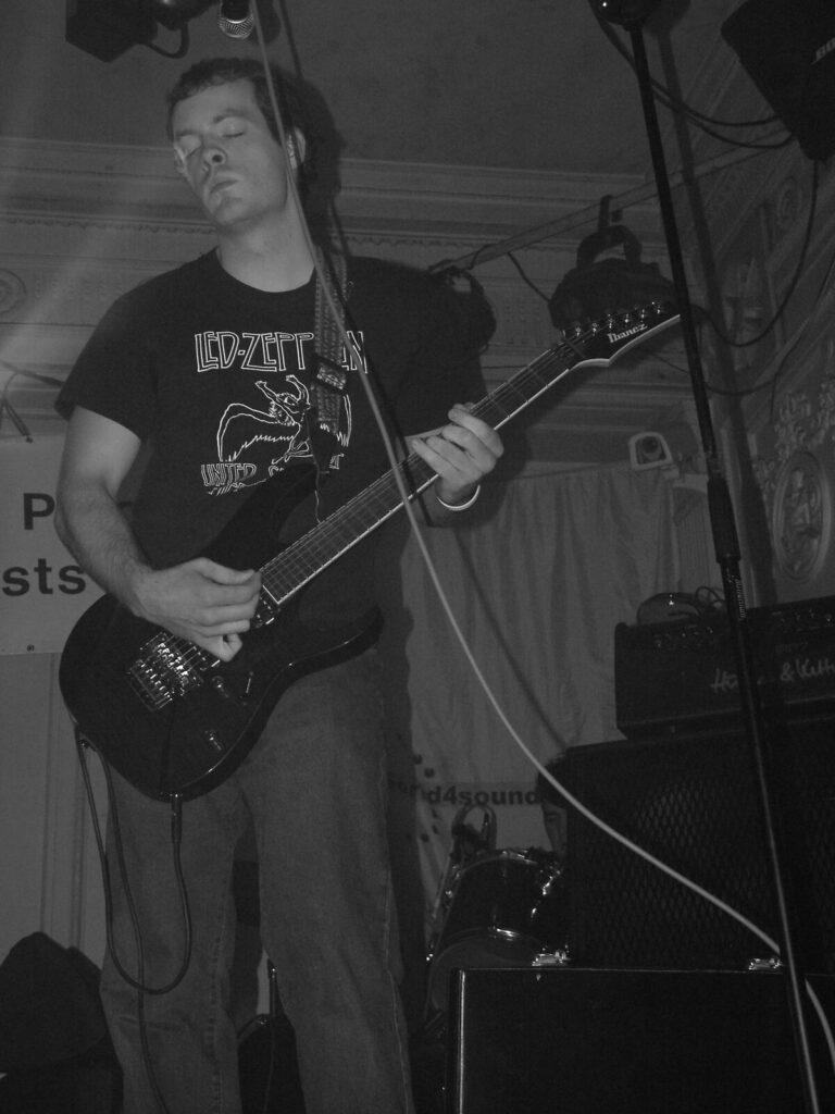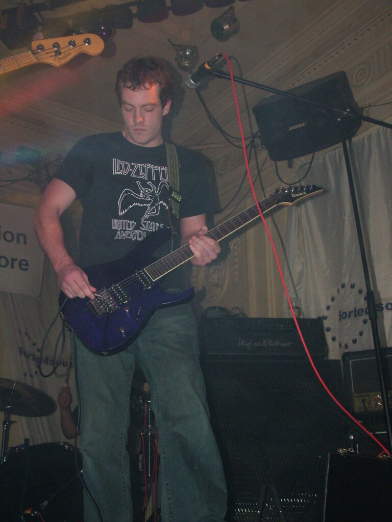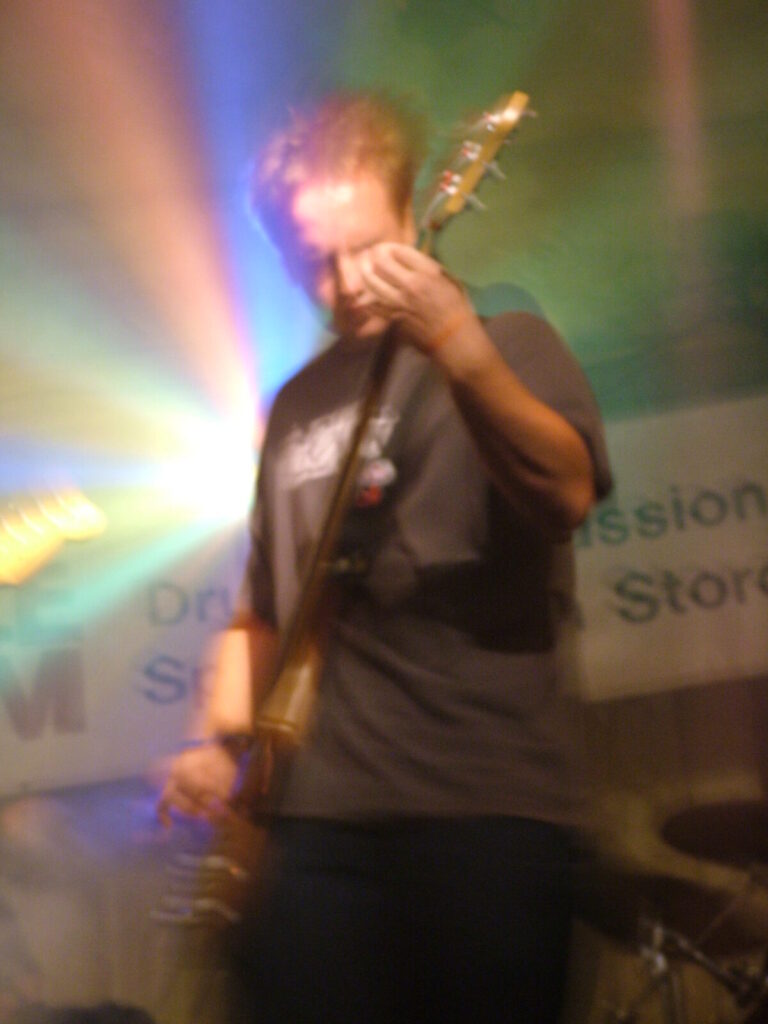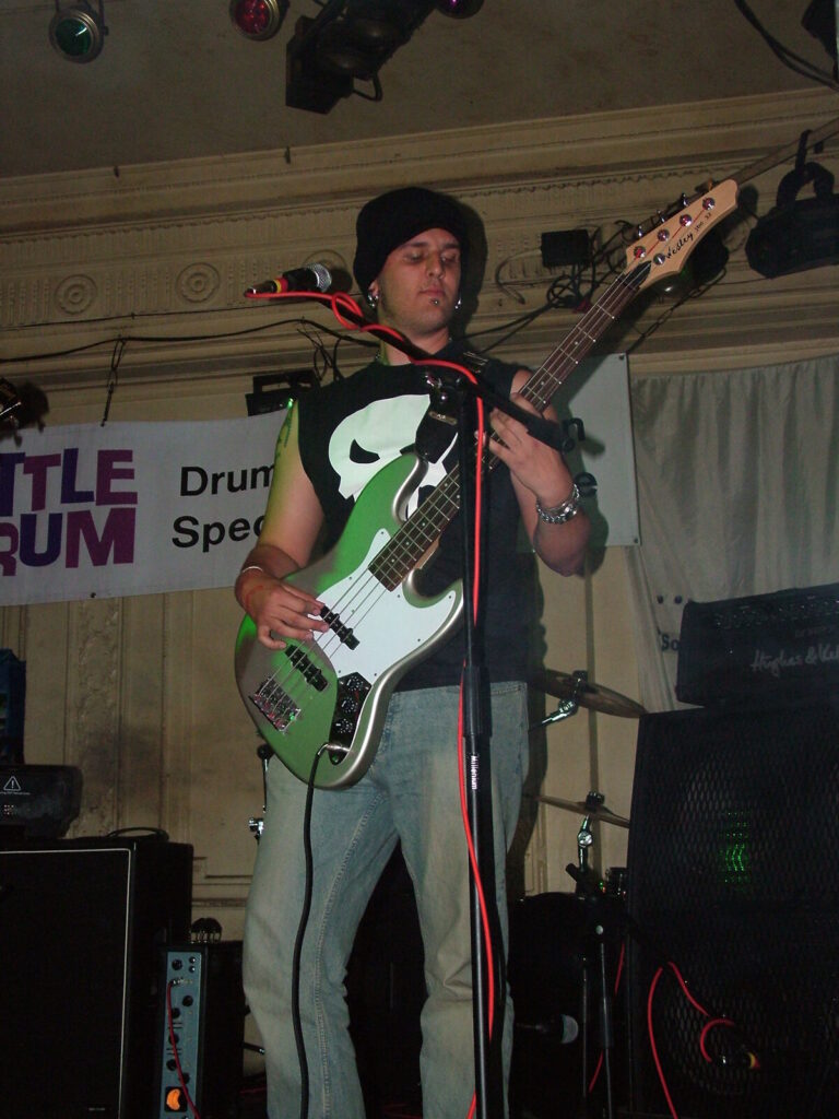 Suddenly the noise level goes up a notch as Malemorphia take the stage. A heavy mix of screaming nu-metal and classic metal with plenty of emotion, with great use of melodic interludes that slowly transcend into chaos. The funky drums and bass kept the sound together, even though the drums seemed to stray at times but still used kit well and used some cool fills. The guitars flew in some great emotional solos that provided extra beef and feelings. With deep grunting lead vocals that were mixed with the guitarist’s more melodic vocal style it worked well. The band had good presence and seemed to play well together, it was a nice, interesting mix of rock and metal and with abit more power in the vocals could be something really good. Their songs built up well and the last song was a completely mind-blowing epic and emotional roller coaster, played with confidence and style and showing some great technique. Impressive stuff.