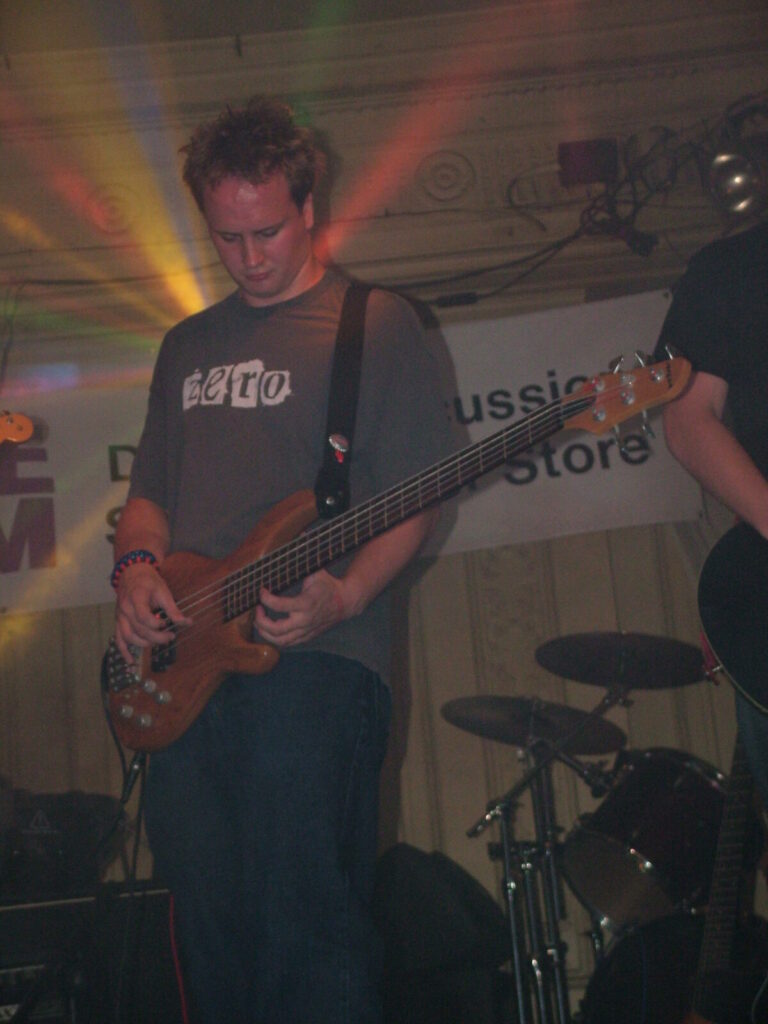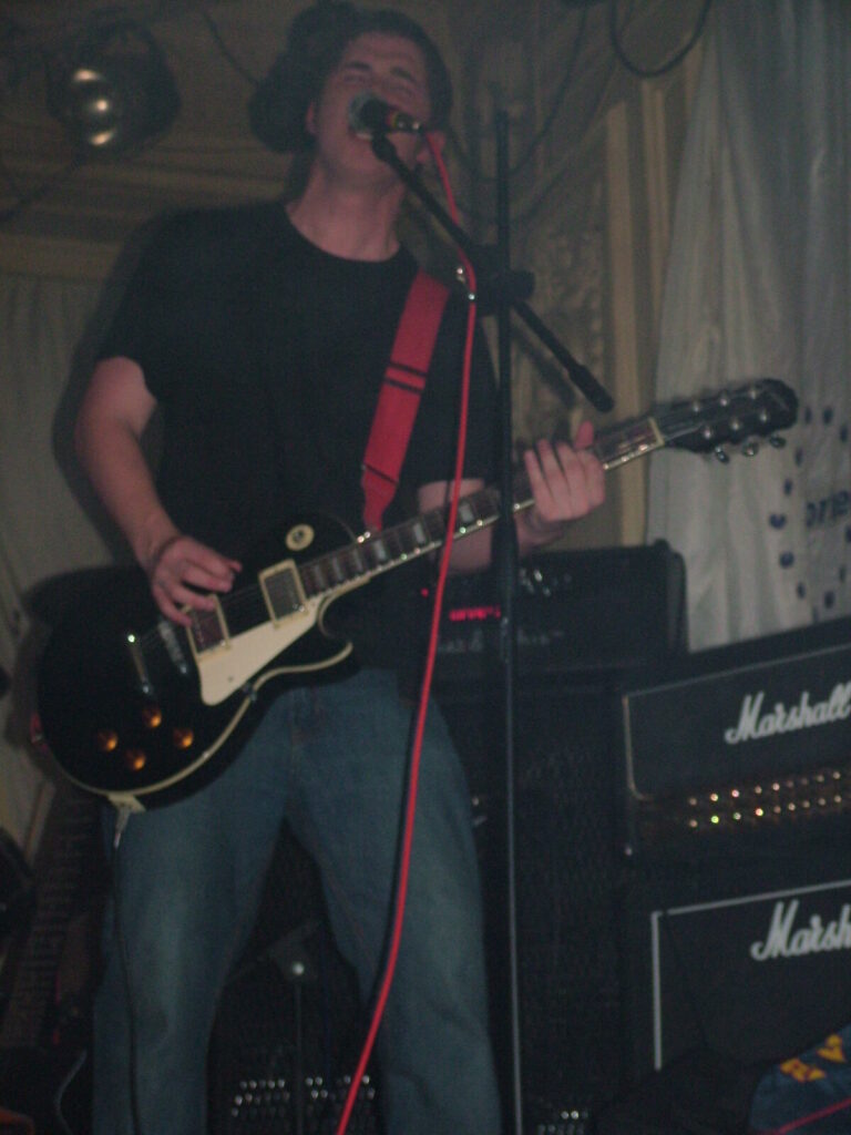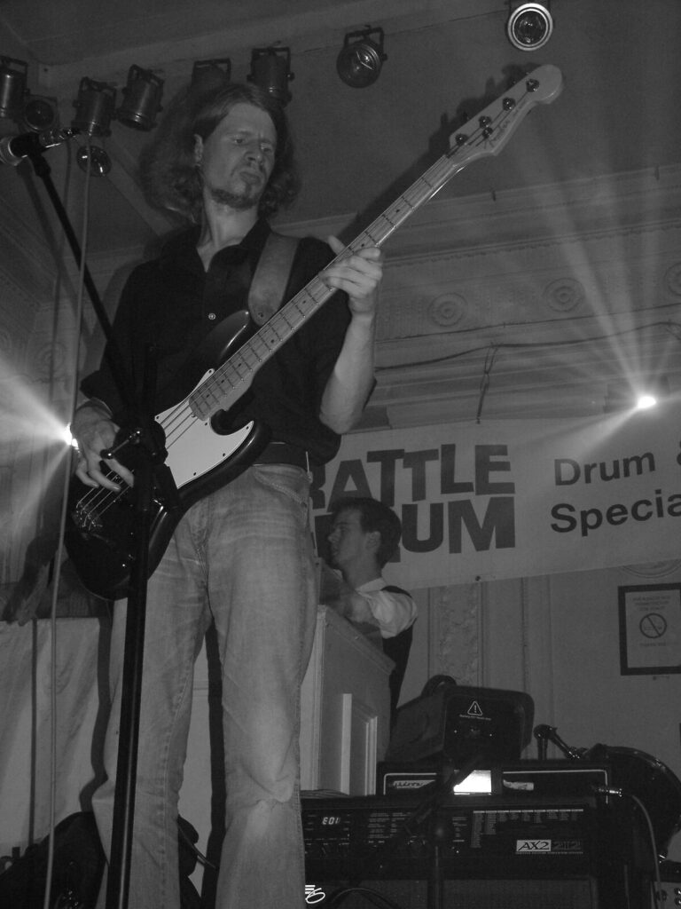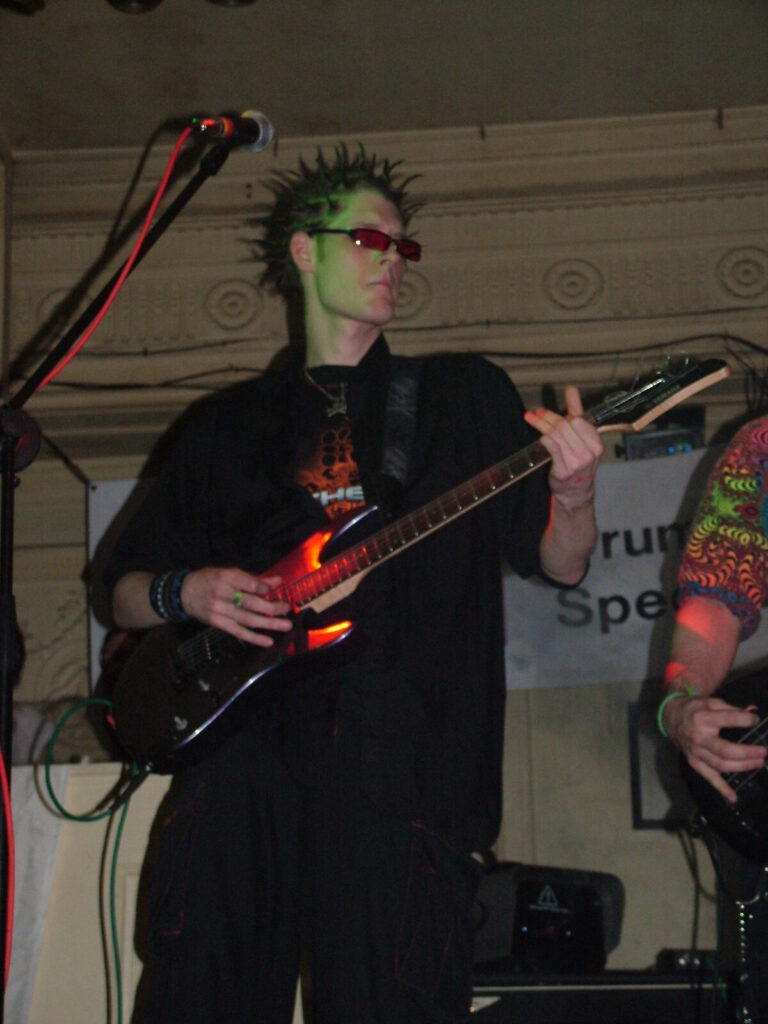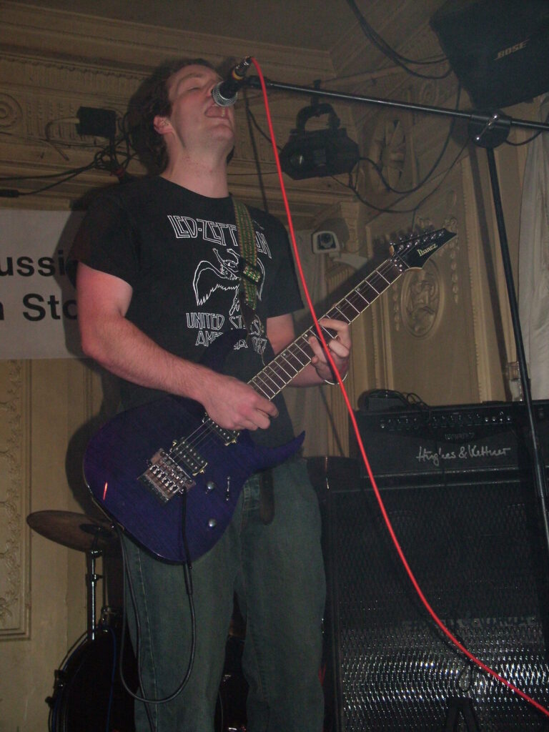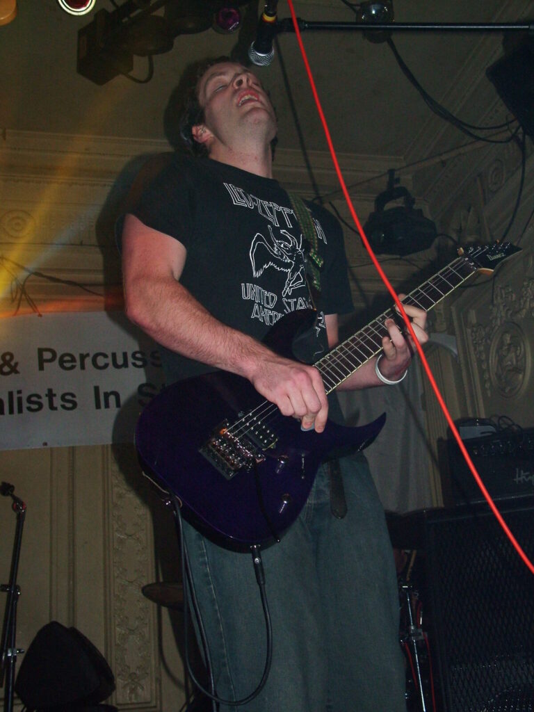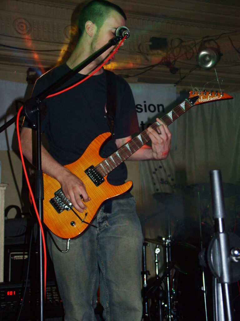 Suddenly the noise level goes up a notch as Malemorphia take the stage. A heavy mix of screaming nu-metal and classic metal with plenty of emotion, with great use of melodic interludes that slowly transcend into chaos. The funky drums and bass kept the sound together, even though the drums seemed to stray at times but still used kit well and used some cool fills. The guitars flew in some great emotional solos that provided extra beef and feelings. With deep grunting lead vocals that were mixed with the guitarist’s more melodic vocal style it worked well. The band had good presence and seemed to play well together, it was a nice, interesting mix of rock and metal and with abit more power in the vocals could be something really good. Their songs built up well and the last song was a completely mind-blowing epic and emotional roller coaster, played with confidence and style and showing some great technique. Impressive stuff.