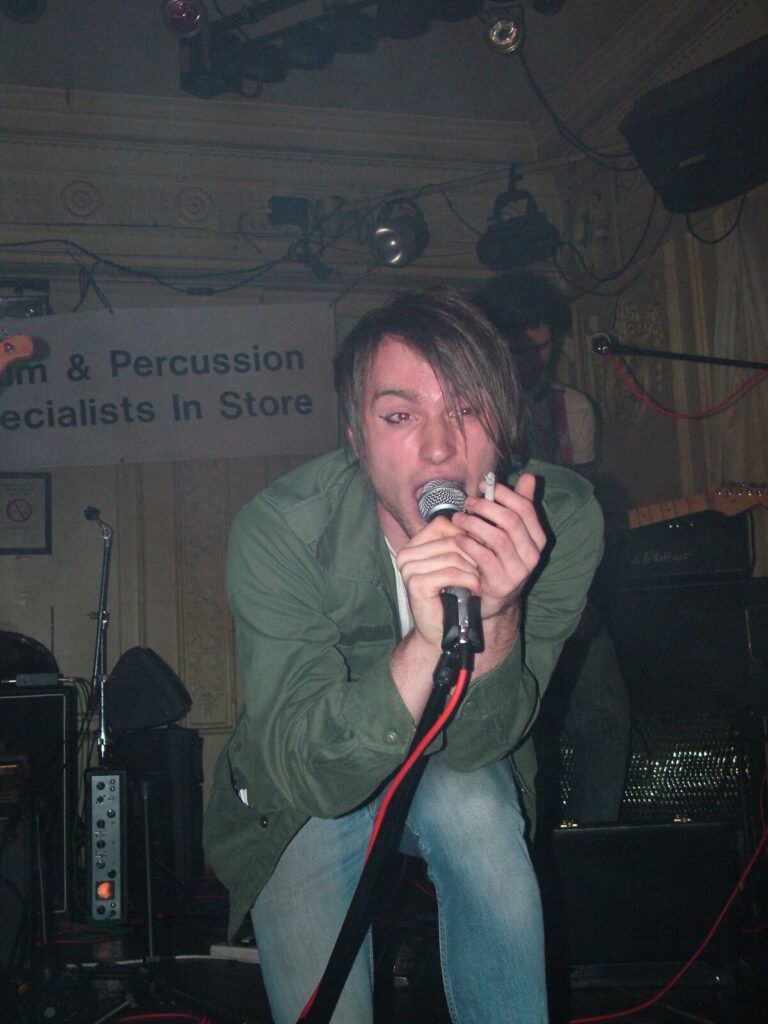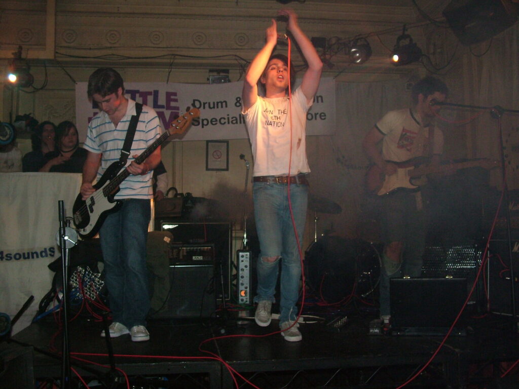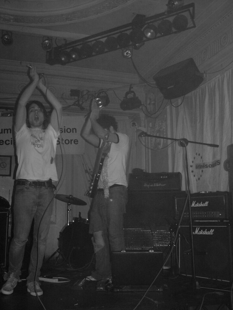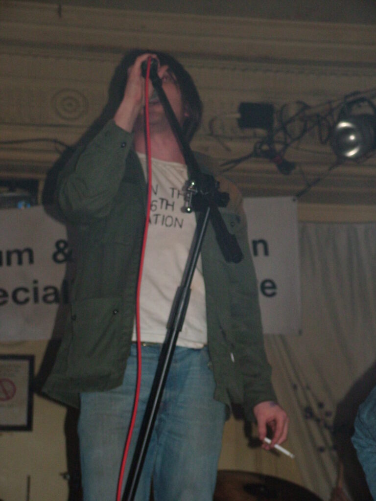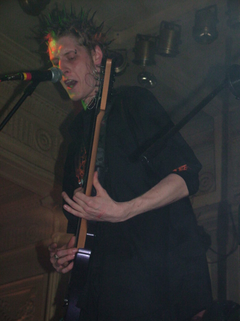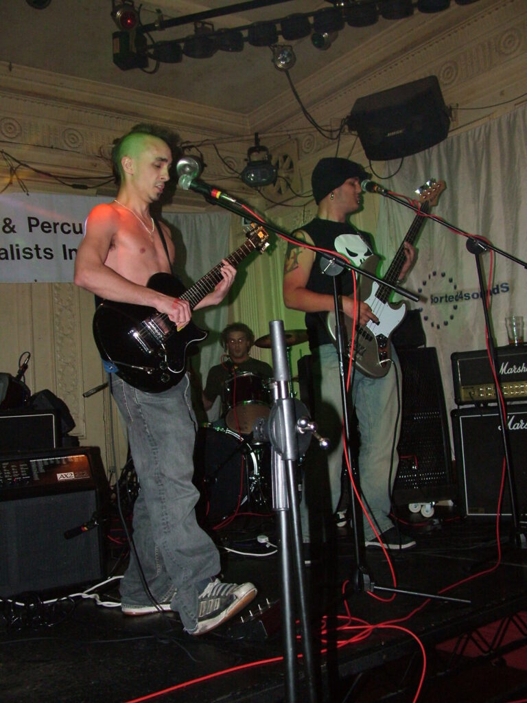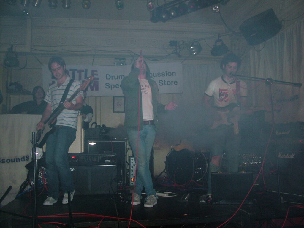 Suddenly the crowd seems to move in and a strange stink fills the room, it’s dirty and really fills your nostrils. It is Issue VI. The front man sucks on his fag as the guitars use flowing, simple riffs and work well with the bass and drums, that push and lift the songs like a fork-lift truck navigating itself through a mine field. They mix a commercial garage and emo sound with shouty punk vocals and have a hell of a lot of attitude. This energetic mix of rock n roll and glam rock is really in your face and with strong and cocky performances from the front man and guitarist, its impossible to ignore. The band seemed very together and confident. They are pretty tight too. They put on a good show even though it was a bit batty at times. Impressive and cocky stuff and with a cool image it was fun to watch.
