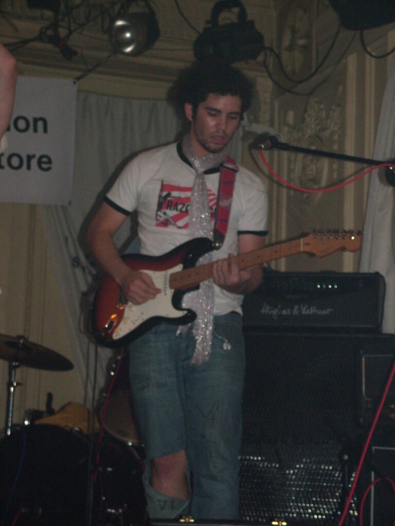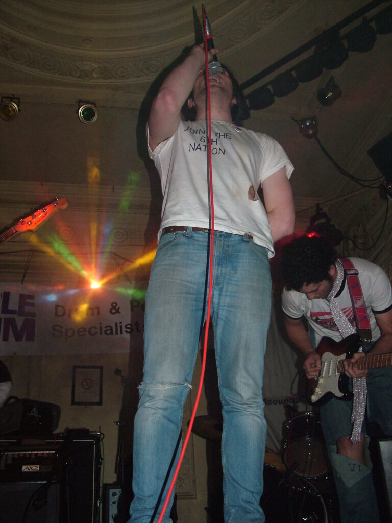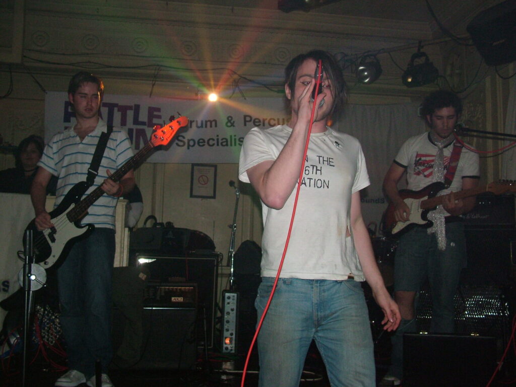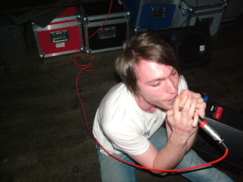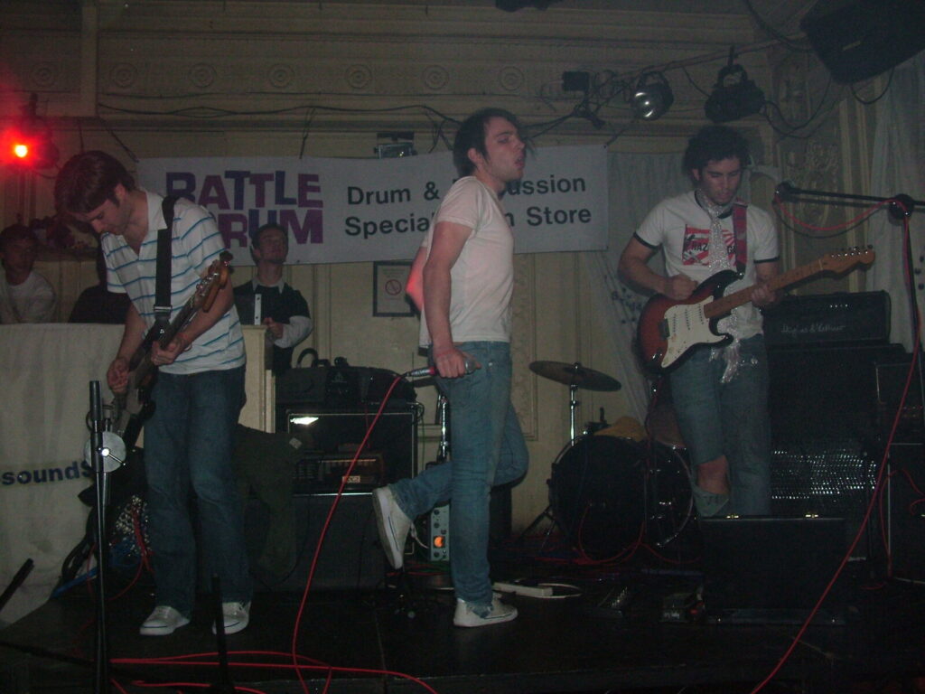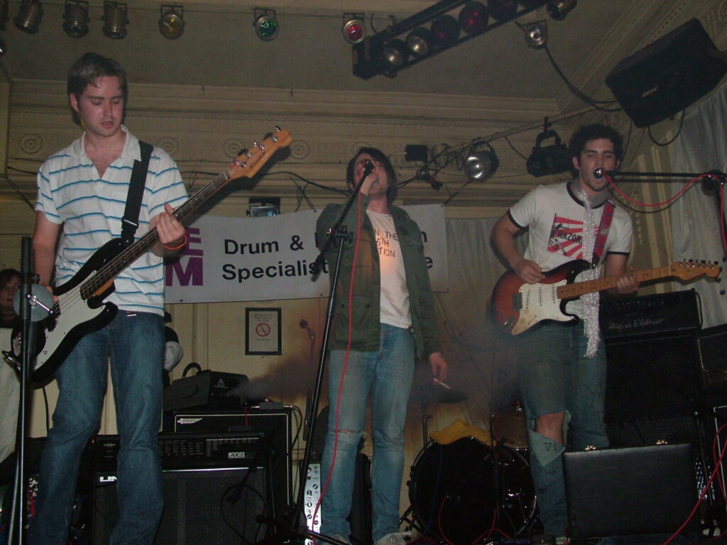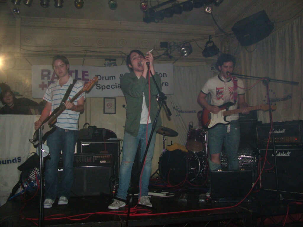 Suddenly the crowd seems to move in and a strange stink fills the room, it’s dirty and really fills your nostrils. It is Issue VI. The front man sucks on his fag as the guitars use flowing, simple riffs and work well with the bass and drums, that push and lift the songs like a fork-lift truck navigating itself through a mine field. They mix a commercial garage and emo sound with shouty punk vocals and have a hell of a lot of attitude. This energetic mix of rock n roll and glam rock is really in your face and with strong and cocky performances from the front man and guitarist, its impossible to ignore. The band seemed very together and confident. They are pretty tight too. They put on a good show even though it was a bit batty at times. Impressive and cocky stuff and with a cool image it was fun to watch.