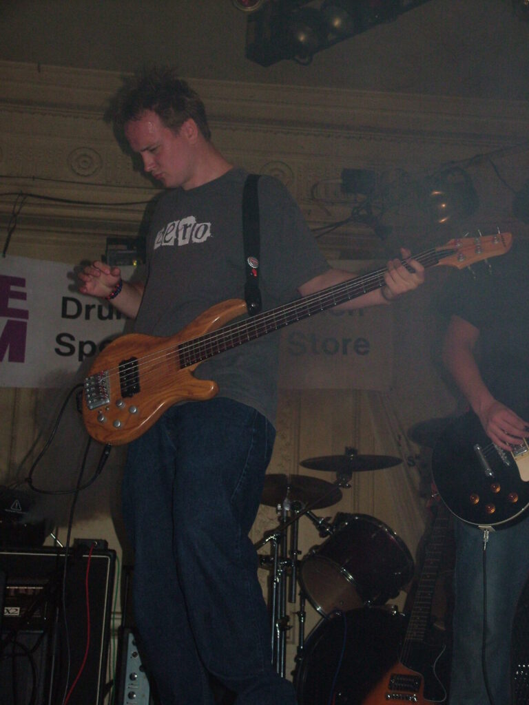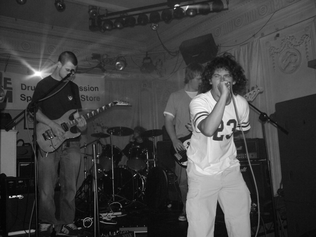 Catharsis were first up in heat 2, and with their steady progressive emo style, they used strong guitars and tight bass to give them a heavier edge. With the rolling basslines and melodic vocals, their songs had good movement and built up well, but when it came to it, they lacked conviction, and it all felt a bit unbalanced, with a lot of repetition. The high-pitched vocals didn’t seem to fit the style, the drums were crashing around, but for all the crashing, they didn’t have enough power to give the much-needed beef. It wasn’t the tightest all-round performance we’ve ever seen, but did have an interesting and melodic twist to the well-know emo style. With passionate performances from the bassist and guitarist, these guys have got potential, but don’t seem to know where to direct their sound.