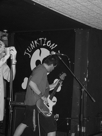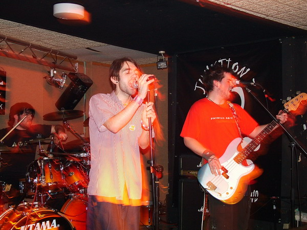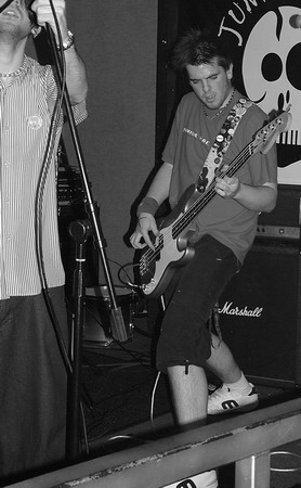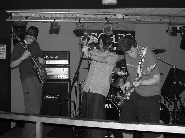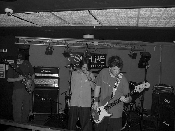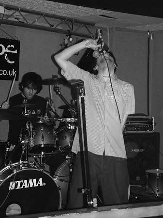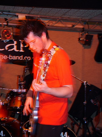 The first band on were, Third Opium War, and beginning with some seriously loud and immediate slap bass, the first thought was that these guys could be more metal than they looked. But even though the obtrusive yet continuously impressive bass continued into the first song and throughout the set, their sound changed when the vocals came in to create a rocked up Blur type feel. At first the vocals although strong and clear, lacked expression and tone changes, but a few songs into it and there was a noticeable relaxation in the frontman, and his vocals improved no end. The deep, pounding drums never let up, with some very complicated fills stuck in there, and the sometimes crunchy, sometimes clean and wavy guitar riffs went together to make a busy and brilliantly engineered sound, with each song being different, new, and nothing like the song that proceeded it. These guys were not, unfortunately, what the crowd were looking for, so the crowd interaction didn’t work too well, but not for lack of trying on the frontman’s part. As the set went on the general feel of the music became a little punkier, and there were even some ska-esque riffs in there for good measure, or maybe just to annoy the crowd. We liked ‘em anyway. .