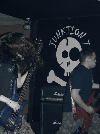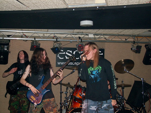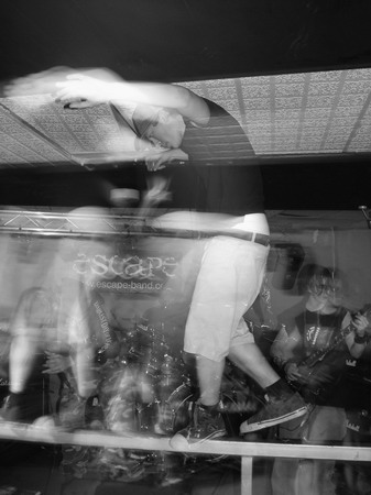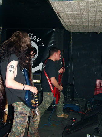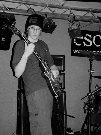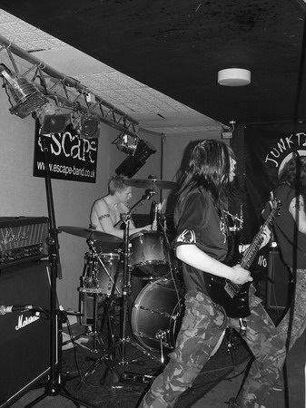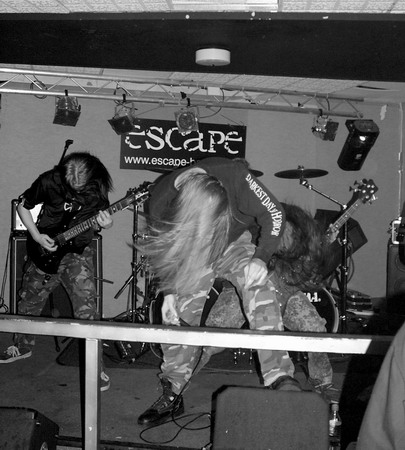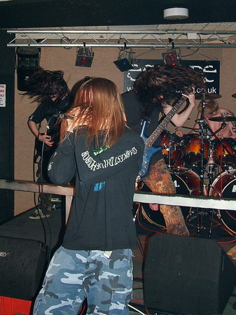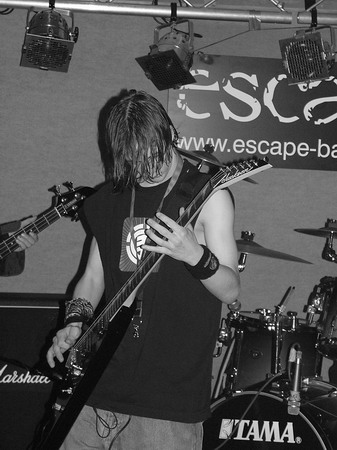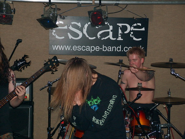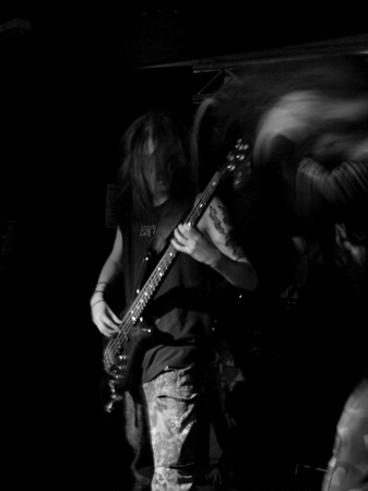 Now we get into the serious Entombed style angry stoner metal. Prometheius Kills Saints began their set with some major reverb on one of the two vocalists, this proved to work as an interesting and greatly captured contradiction of the low, disturbing roars of the other frontman. Sadly this was the only song to use that interaction, without the effect, the two vocalists were a little too similar, and this meant that the vocal patterns didnÂ’t seem to flow as well, and a lack of expression. However, it also meant that a lot of the attention was redirected to the guitarist, and this he justified with brilliant displays of diverse talent, aside from the dark rolling metal riffs, he threw a few long tapping solos onto the table, and performed an impressive tribute to the late Sir Dimebag. The brutal double bass throbbing heart attacks coming from the drum kit were pretty much constant, and this allowed for simple, flowing, repetitive basslines, which worked well as a backing for the frantic guitar. Prometheius Kills SaintsÂ’ dark raging sound is well performed, they put a lot of energy and passion into their music, and their presence is powerful, although in the end, a little demanding.