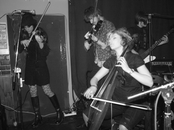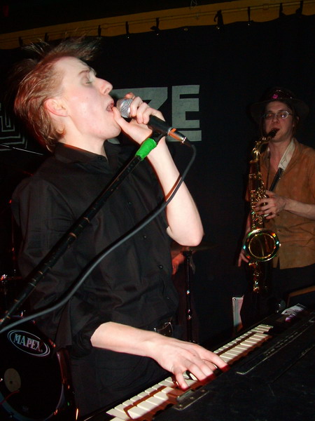 The first set starts quite late at about 11 o’clock, and so we have had plenty of time to get in the mood with a few pints of real ale and as the 7 piece take to the stage it is obvious from the start that this is going to be different. The frontman plays keyboards for this first set, whilst still managing to move around and keep himself very animated, is accompanied by a celloist, two violins, a saxophonist, a bassist and the drummer, all in all, giving the band a varied and interesting sound. This first half of the night is made up mostly, we are told, of new songs and most are based around huge piano arrangments, which are given power and emotion by the awesome string section.