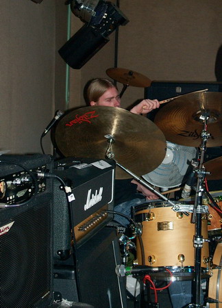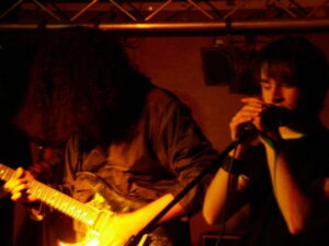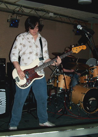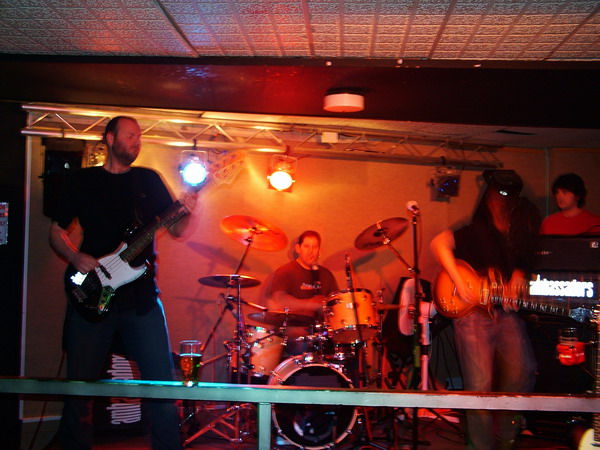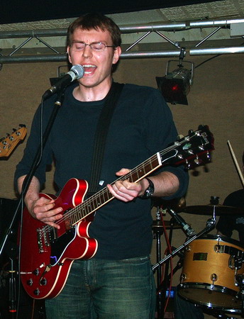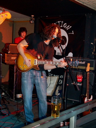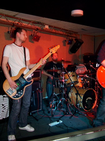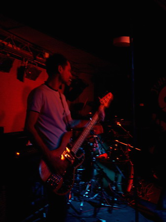 Moriarty boasted The Blueprint’s drummer Chris Billam among their line-up, and he didn’t let them or us down with sheer technique, but in fact his drums dominated the sound and heavily drowned out the bass through most of it. Neither of the two guitars seemed to settle into a constant lead or rhythm roll, each of them taking it in turns to bring in a grungy intro or a few metal edged riffs to this otherwise simple yet inventive indie rock. It was a confident and comfortable performance, and each song was distinctive within their ‘genre’ and still managed to follow similar patterns. The only that let Moriarty down seemed to be the vocals, they were bland and unvaried in tone, but they were delivered clearly, and they used some nice and unusual vocal patterns.