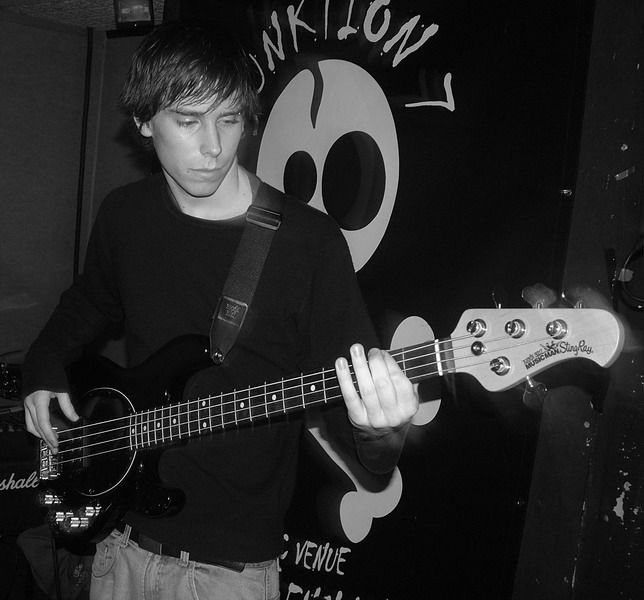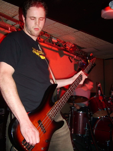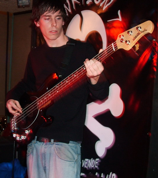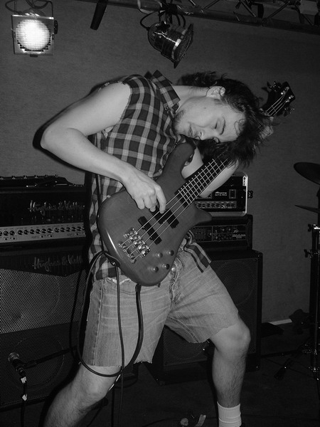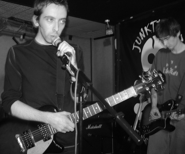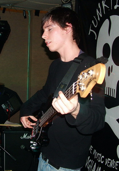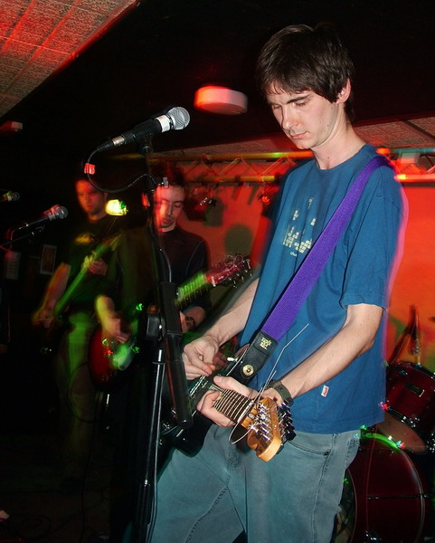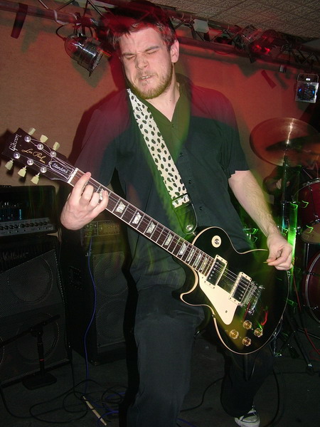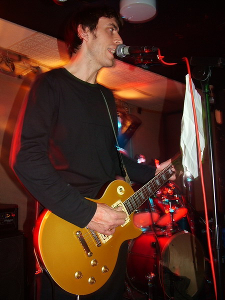 Third on tonight’s bill are El Cielo who we have seen several times before. Everytime we see El Cielo they seem to have a different sound and tonight is no exception, the guitars are more powerful than the last time we saw them and with the heavy, deep basslines giving them a darker edge, their sound is really pounding tonight. The songs are structured around diverse and ever changing guitar riffs, which mix funky breakdowns and solos with melodic and powerful riffs. The bass holds the songs down and pushes them forward whilst the drummer mixes random fills with strong and driving beats. The whole sound is quite unpredictable and inventive, at times it sounds almost improvised. The breaks on this random, run away train are put on by the vocalist, who gives the them a catchy feel and adds stablility to their songs. The vocals mix throaty screams with soft melodies well, but with the crashing and random guitar and drumming turned up to full tonight, it becomes hard to make out the lyrics. Even though they write clever and original riffs with some really interesting and imaginative dynamic, El Cielo seem to lack real conviction at times and we have yet to see them really capture their recorded sound live. A great band but live it always seems hard to get into their songs, and we just don’t quite know why.