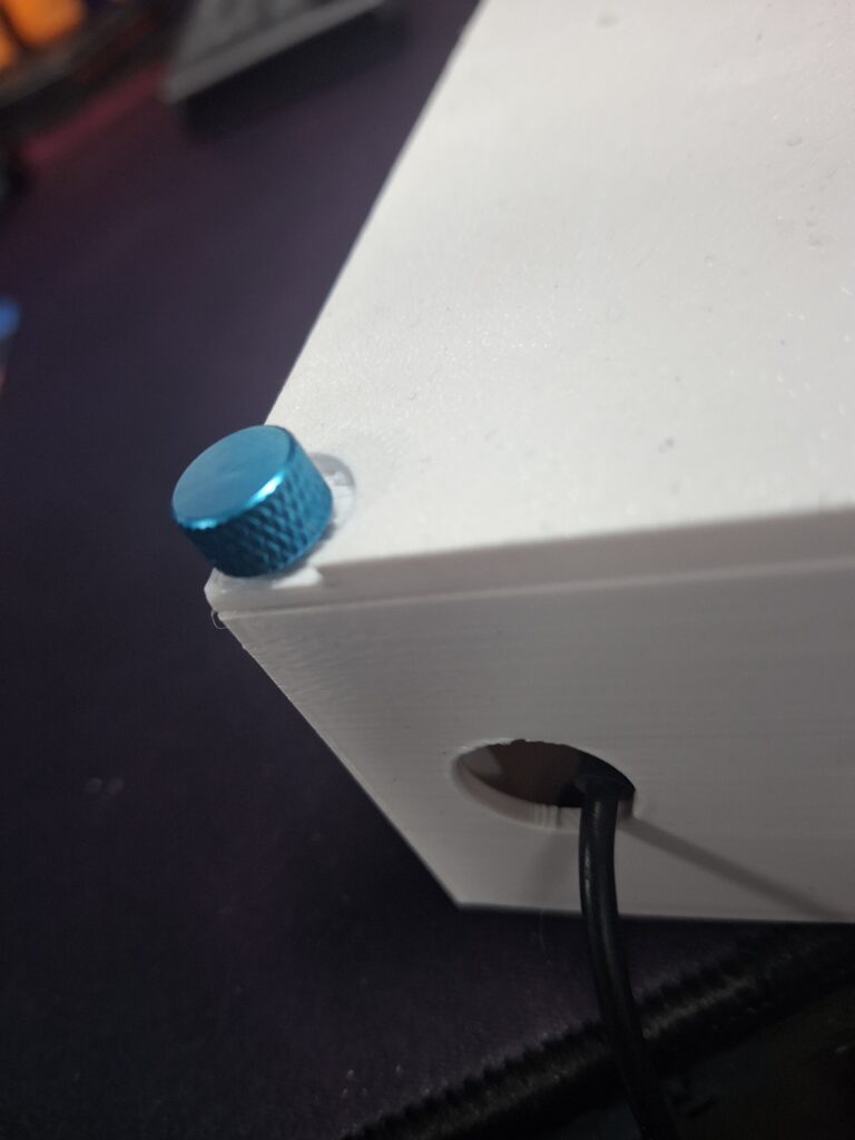 I needed some nice screws to to put the lid on with, as i suspect i will need to access this a few more times, i opted to get some nice finger screws…..Found some really nice blue ones, the would look so good on the white
