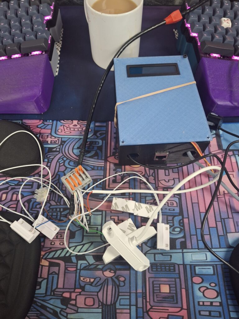 After a few trial runs with the case, i finally got it all in the case and wired up. Didnt connect the window/door sensors (did for video), but enough for a trial run (even made a homeassitant dashboard).