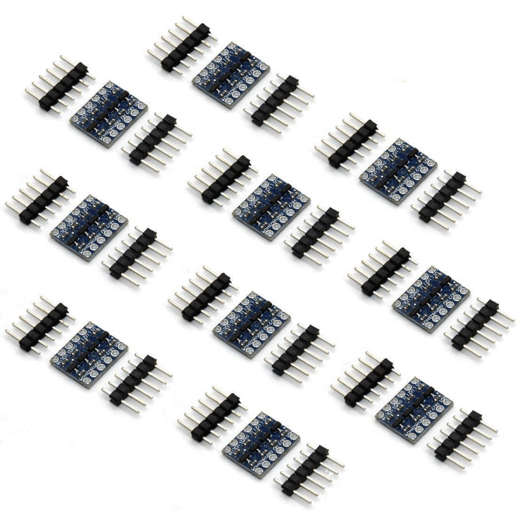 The IC2 screen and Ultrasonic parking sensor all use 5V for power and data, whereas the ESP32 only uses 3.3V. This was something i have not had issue with before, i guess im lucky and use 5V peripherals on Arduino’s. So after a little reading around, i found you can nice little shifters that allow you to run 5v data devices from 3.3v